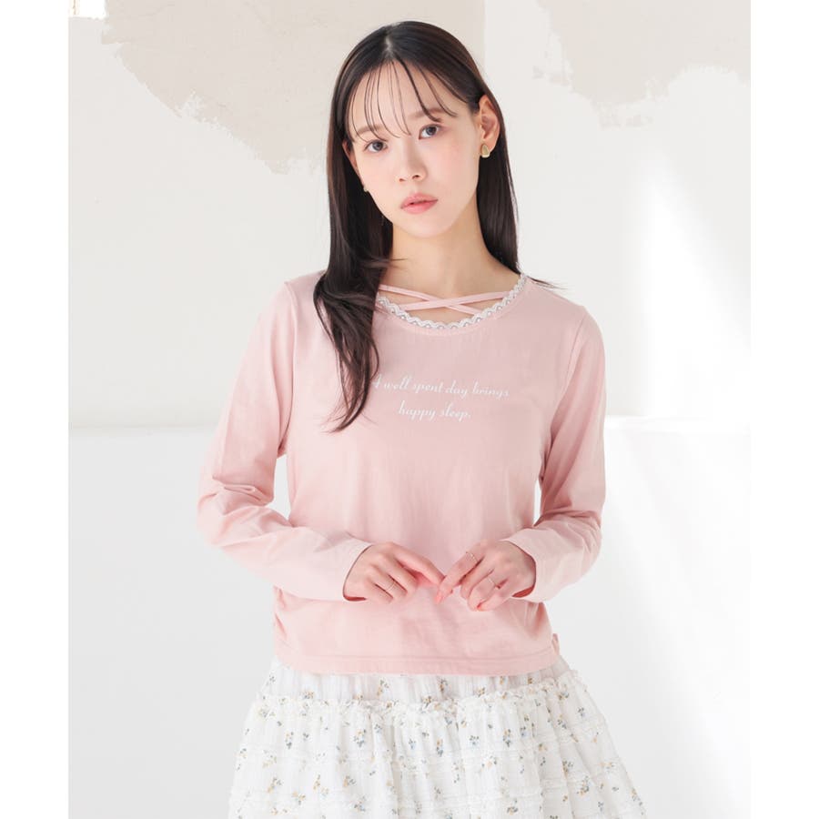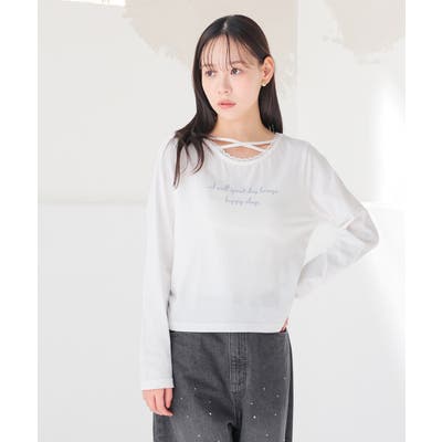 顔周りがすっきり華奢見えする胸元クロスデザイン。