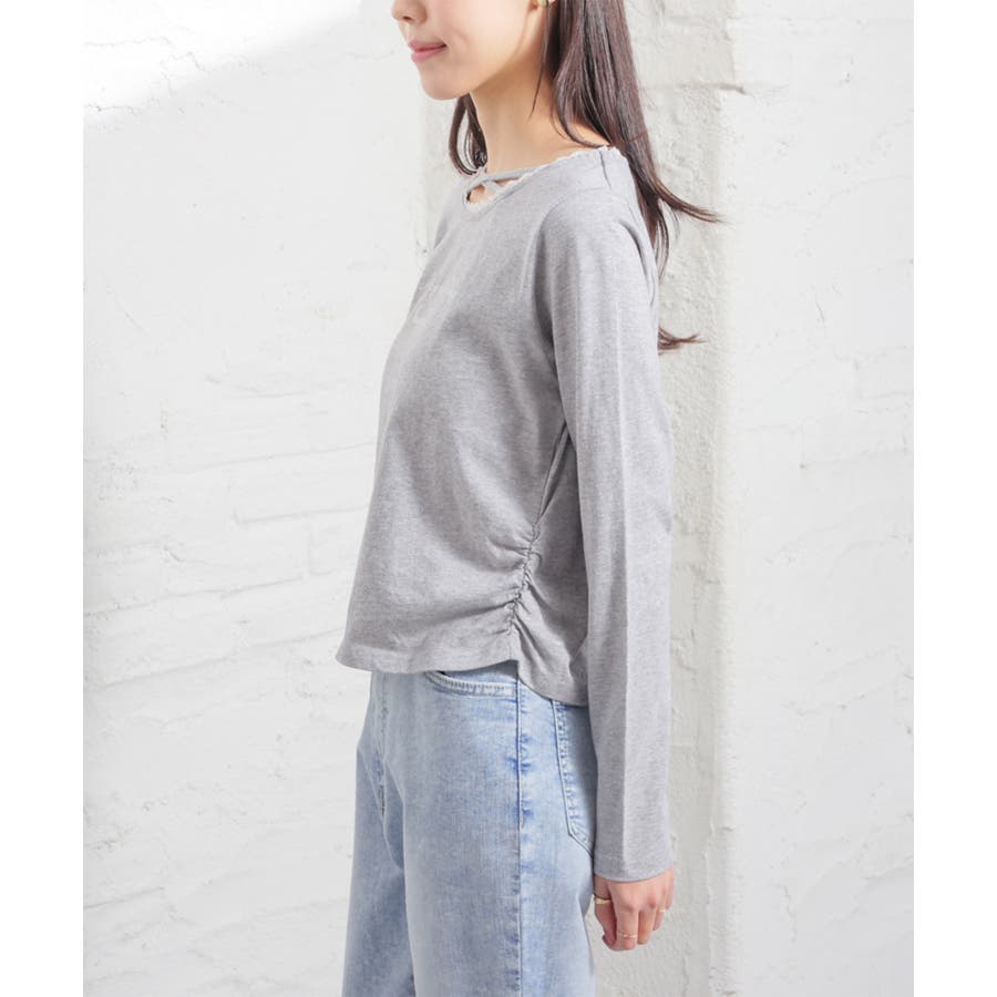 ネックレスなどのアクセサリーが無くても、1枚でお洒落な着こなしに。