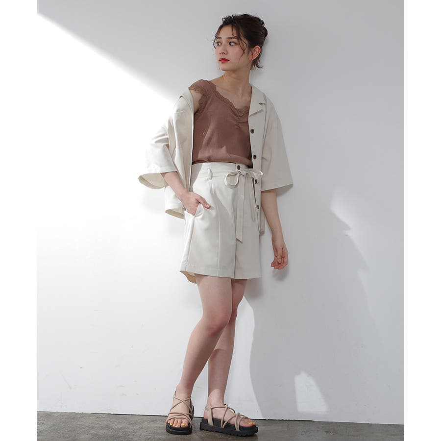 胸元の開くトップスと合わせてレースをチラッと見せるスタイルがおすすめ♪