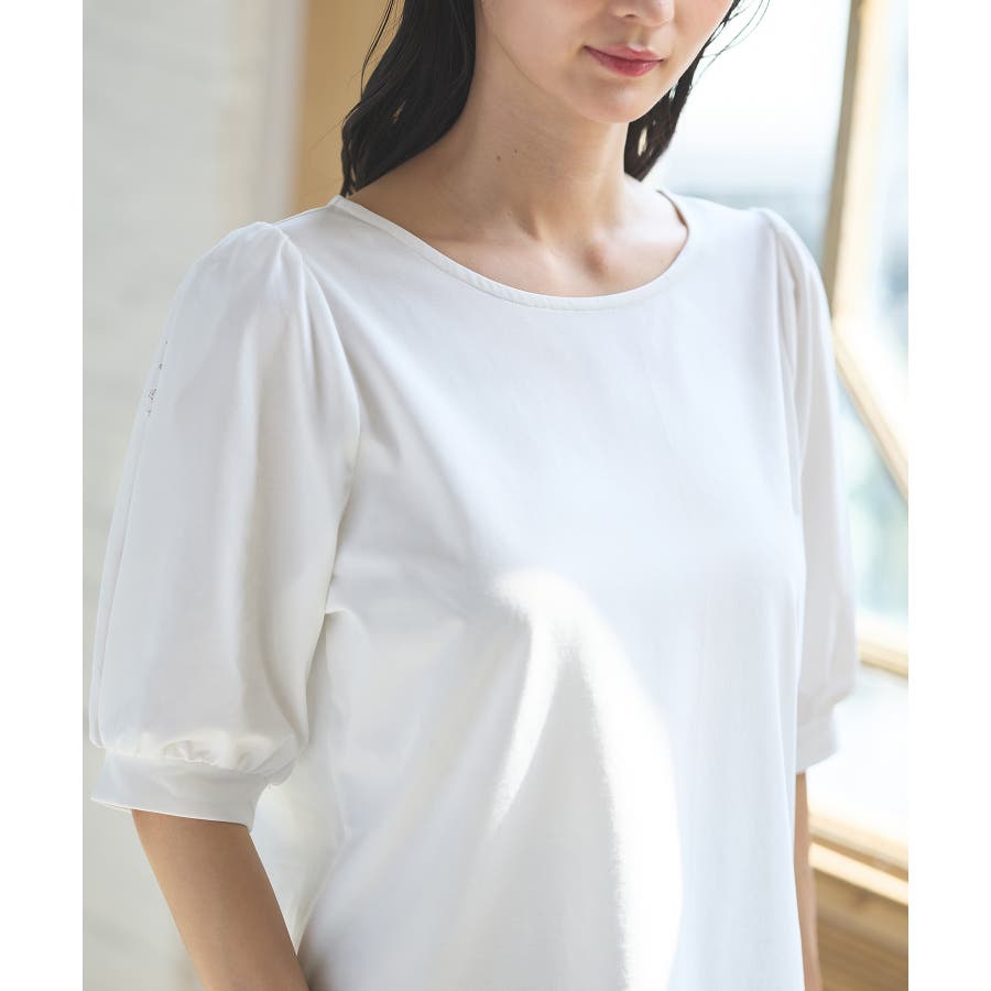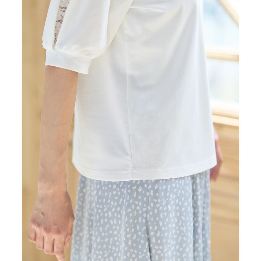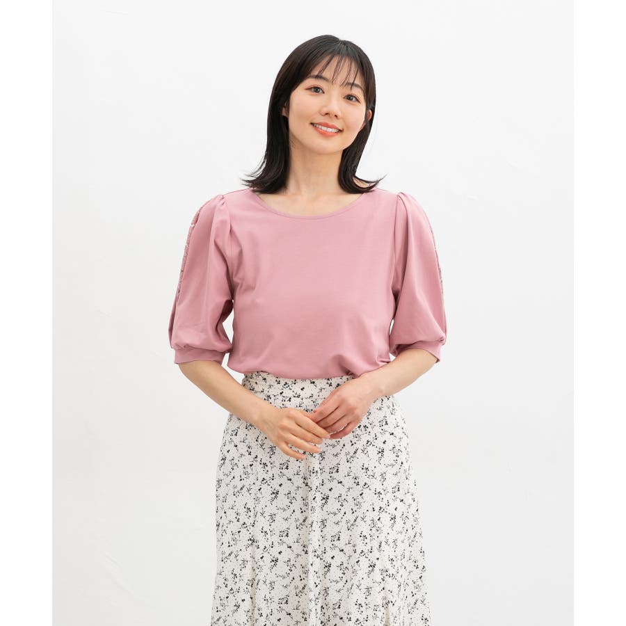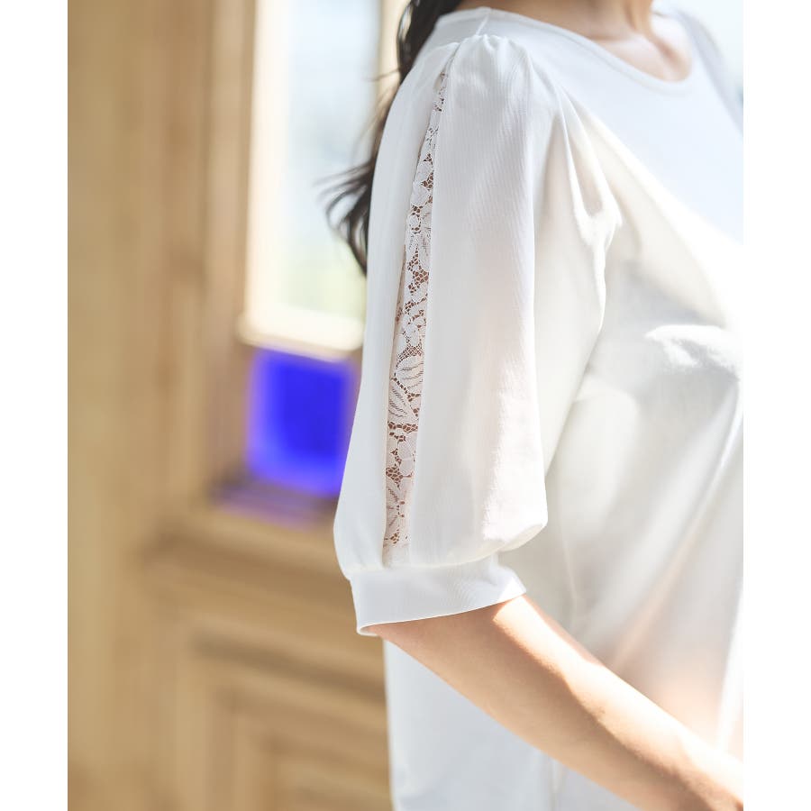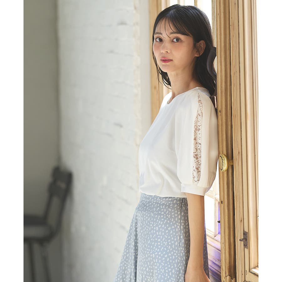 ボリューム袖のスリットから繊細な花柄レースがのぞく華やかなデザイン。