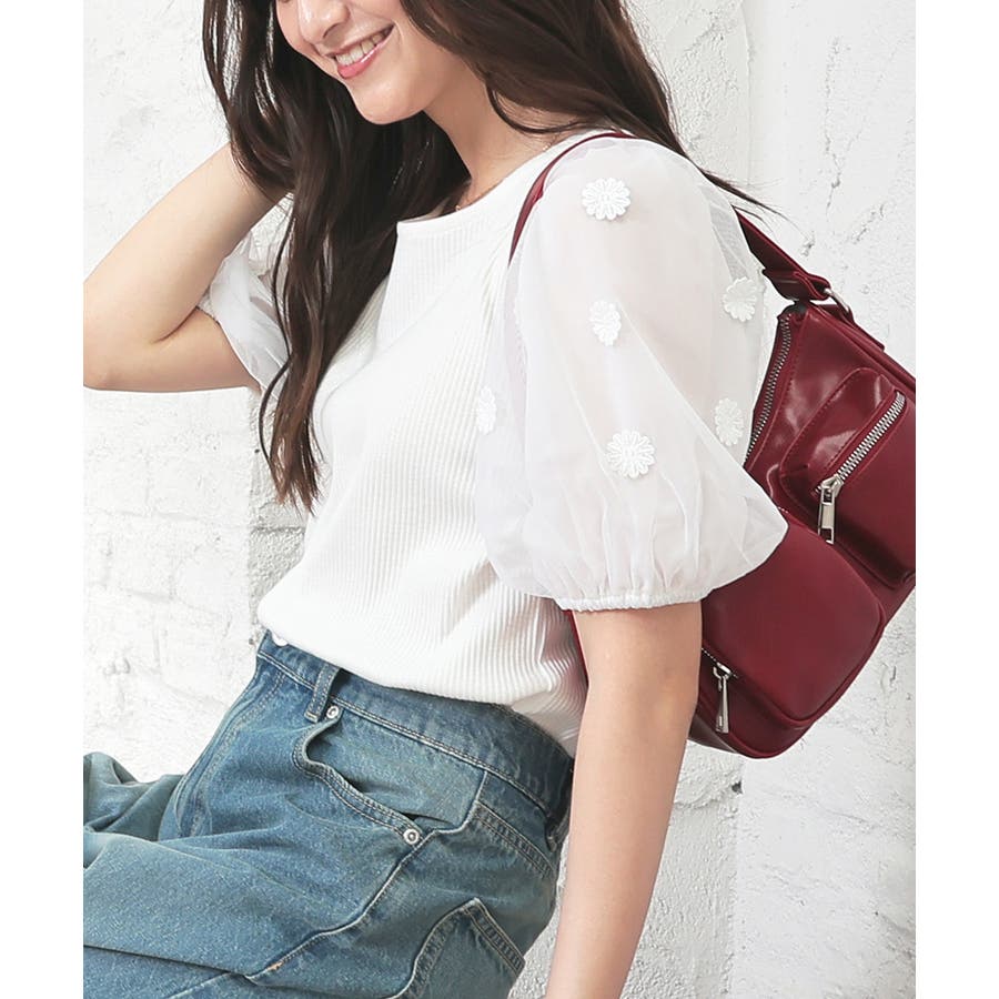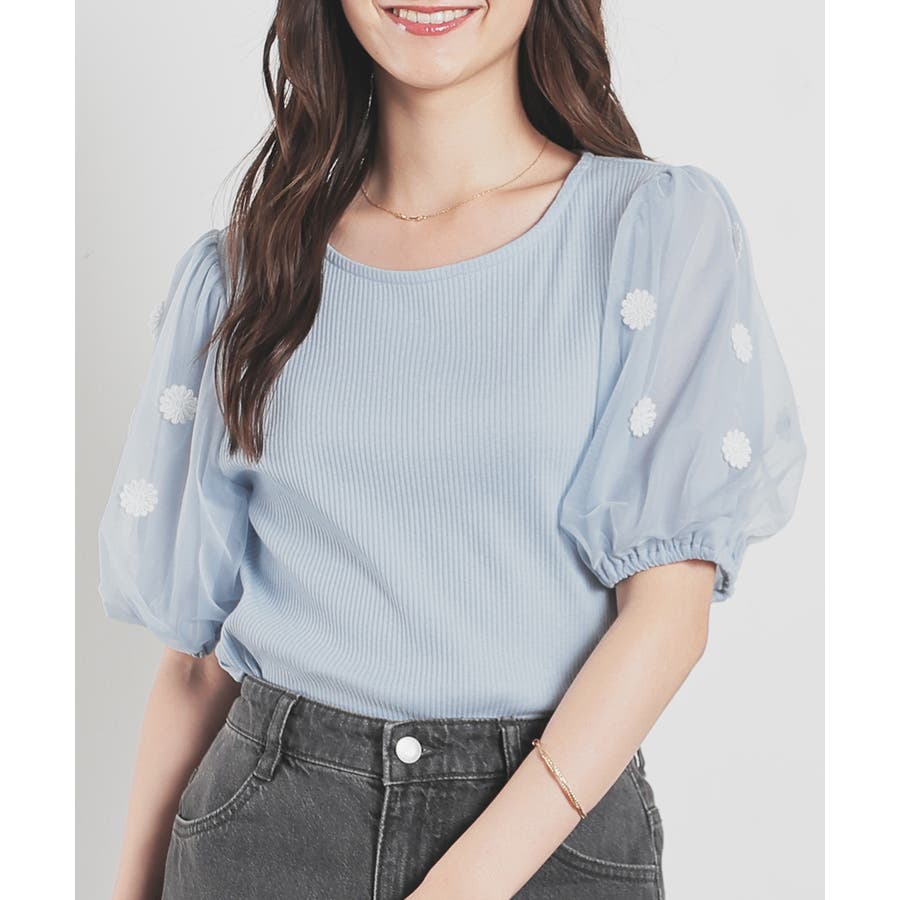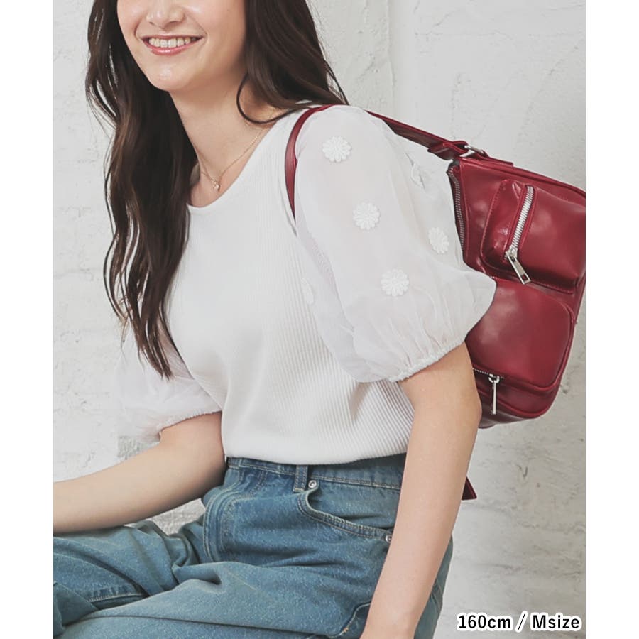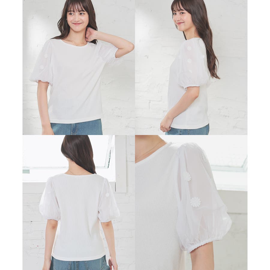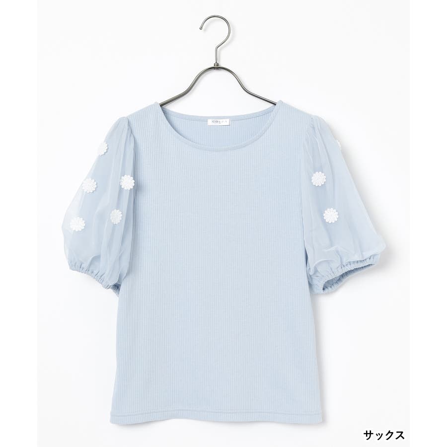 商品カテゴリ:5780139627 トップス カットソー 半袖 花モチーフ チュール シフォン ストレッチ テレコ 綿混 クルーネック ふんわり袖 コンパクト ガーリー 夏 白 黒 カテゴリ101003 tops プルオーバー 半そで 花モチーフ付きトップス フラワーモチーフ 透け感 シアー 伸縮 伸びる 動きやすい テレコ素材 cotton 天然素材 コットン 綿 丸首 ラウンドネック Uネック パフ袖 ポワン袖 ぽわん袖 パフスリーブ バルーン袖 バルーンスリーブ ボリューム袖 ボリュームスリーブ 袖ボリューム 袖部分のみ二枚仕立て すっきり ショート丈トップス カジュアル ガーリーカジュアル 女の子 女子 可愛い かわいい kawaii おしゃれ Sサイズ S 小さいサイズ Mサイズ Lサイズ LLサイズ LL 大きいサイズ FP401 高校生 大学生 10代 20代 若い 学生 スクール ティーン ヤング JK JD トレンド 流行 中学生 人気 シーズン夏 夏物 夏服 夏秋 初秋 秋 秋物 秋服 新作 新着 ホワイト ブラック サックス 青 ブルー 9627 578-13-9627 5780139627 COLZA コルザ honeys ハニーズ レディースファッション ladies fashion 女性 女 レディース ファッション 女性服 服 婦人服 578013962731 花モチーフ付トップス 価格2280