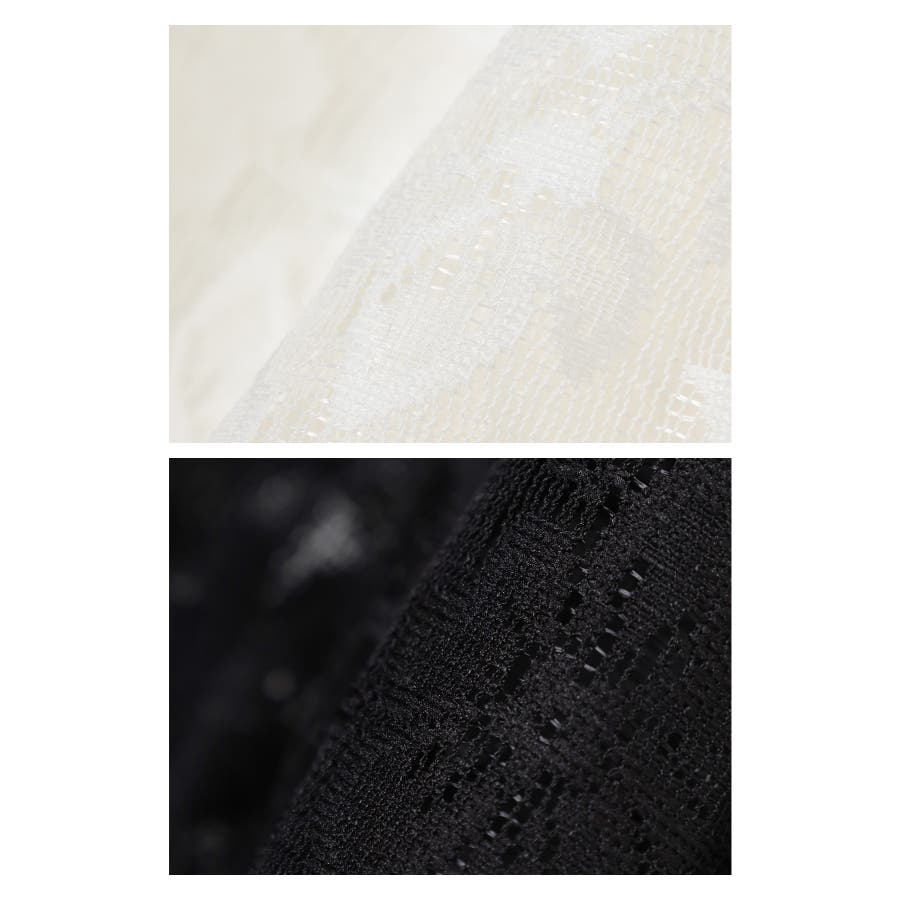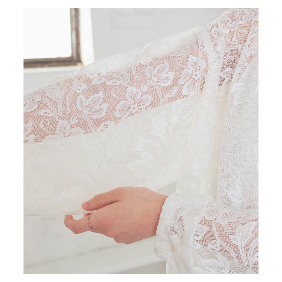 贅沢な総レースとふんわり袖がキュートなガーリーデザイン。