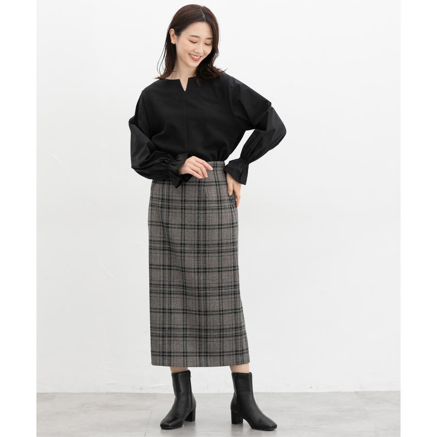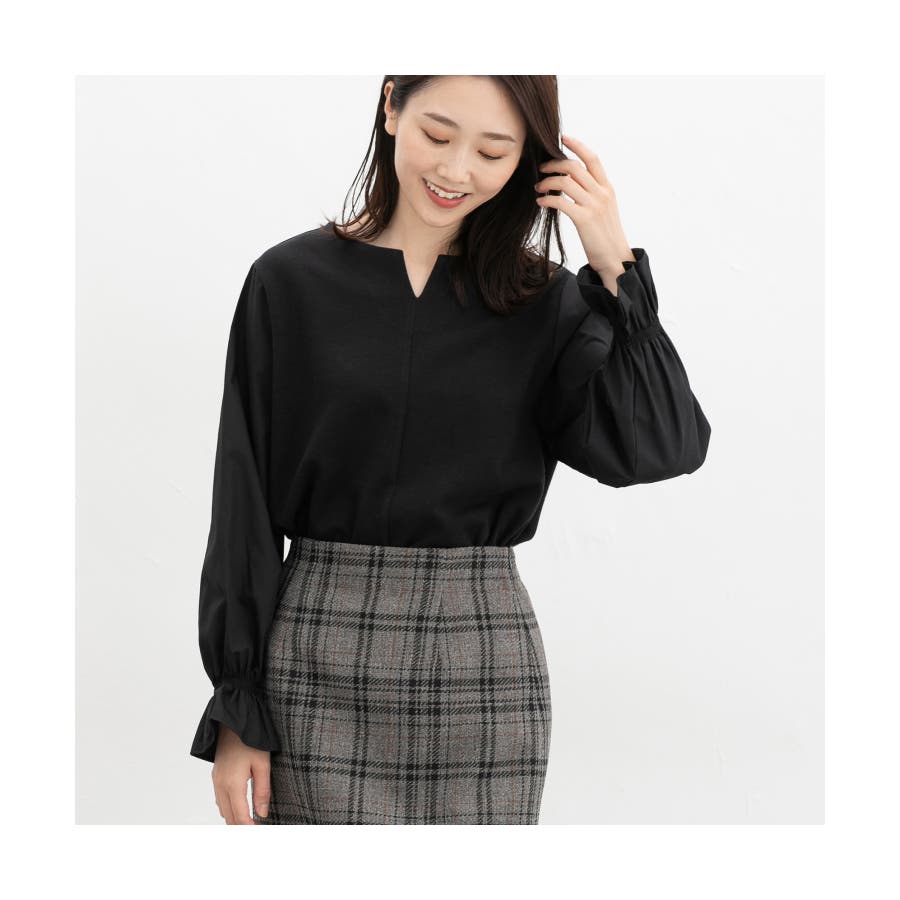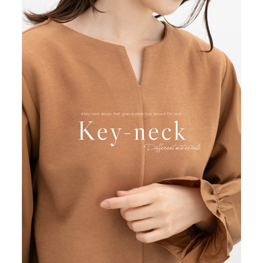 首回りをスッキリみせてくれるキーネックデザイン。