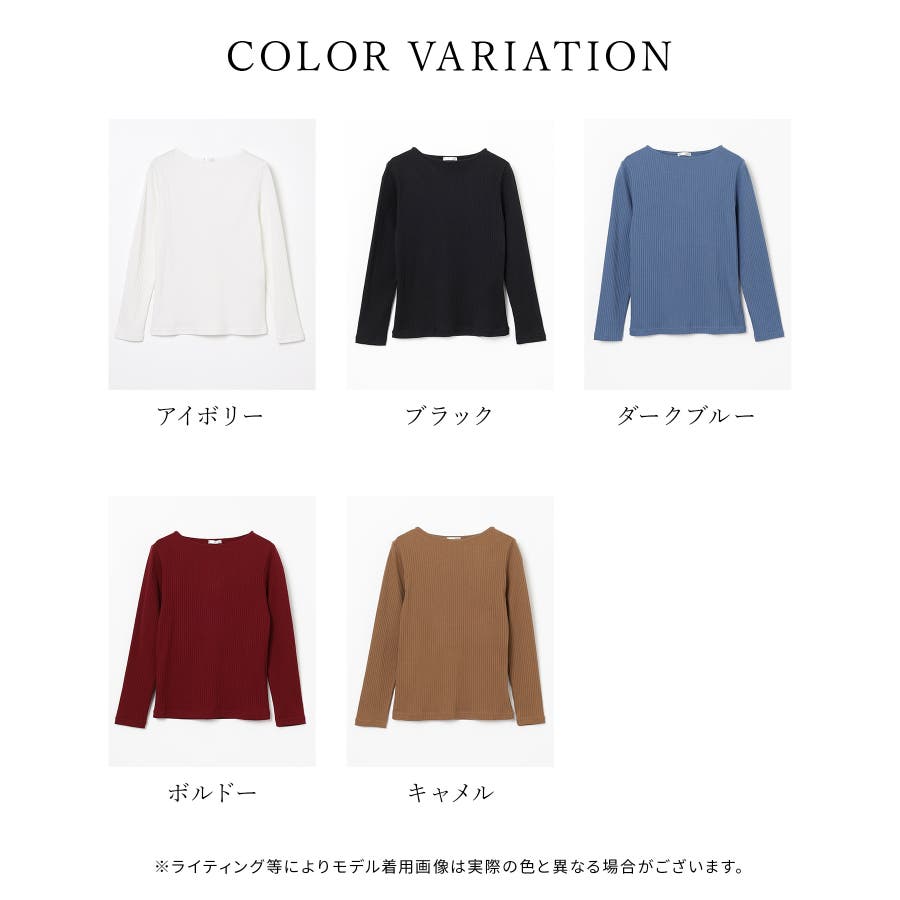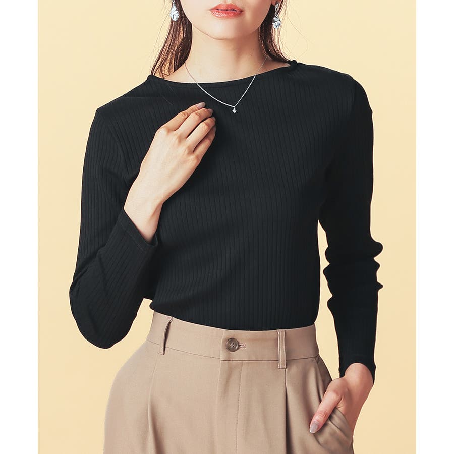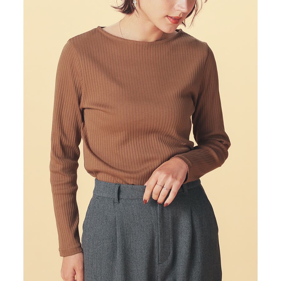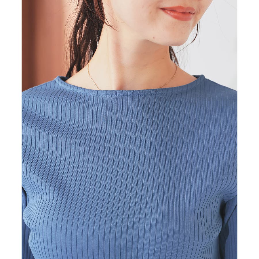 オーソドックスなリブのTシャツです。ボートネックなのでネックラインが開きすぎないのが上品で良いです。