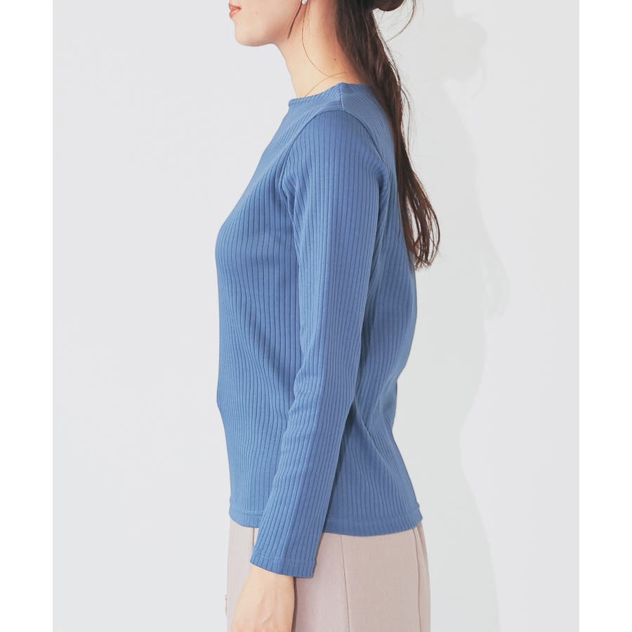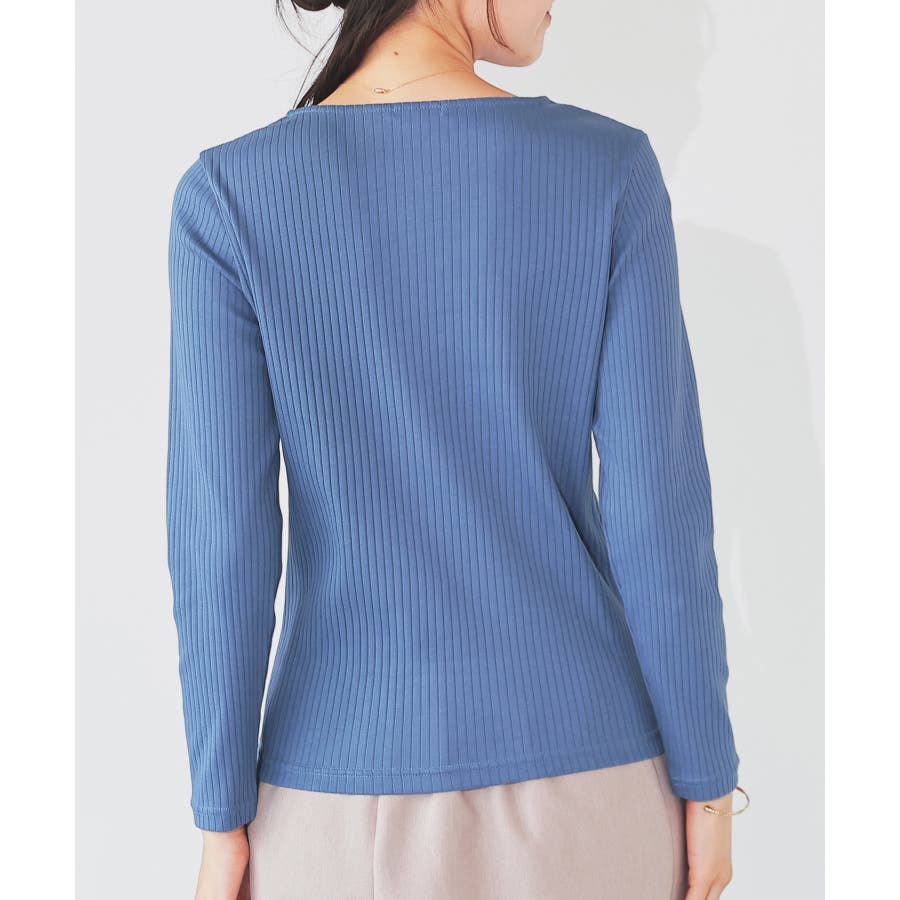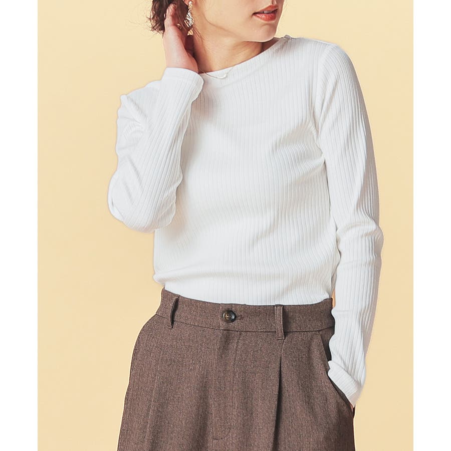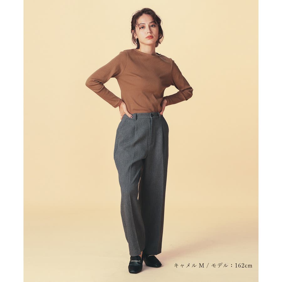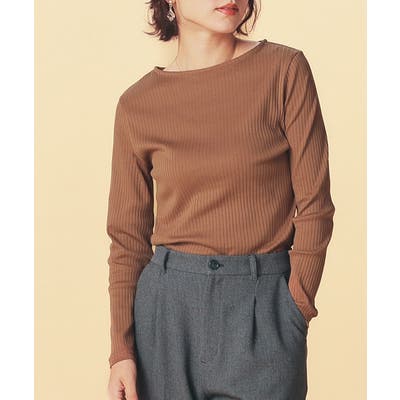オーソドックスなリブのTシャツです。ボートネックなのでネックラインが開きすぎないのが上品で良いです。