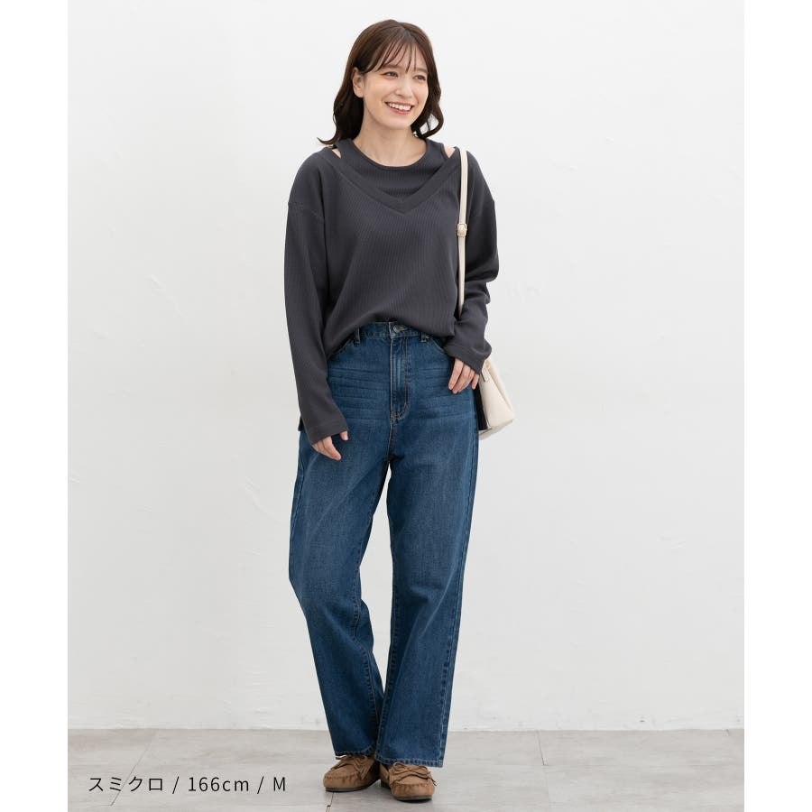 ゆったりめの幅とヒップまで隠れる丈感で体型もカバー。
