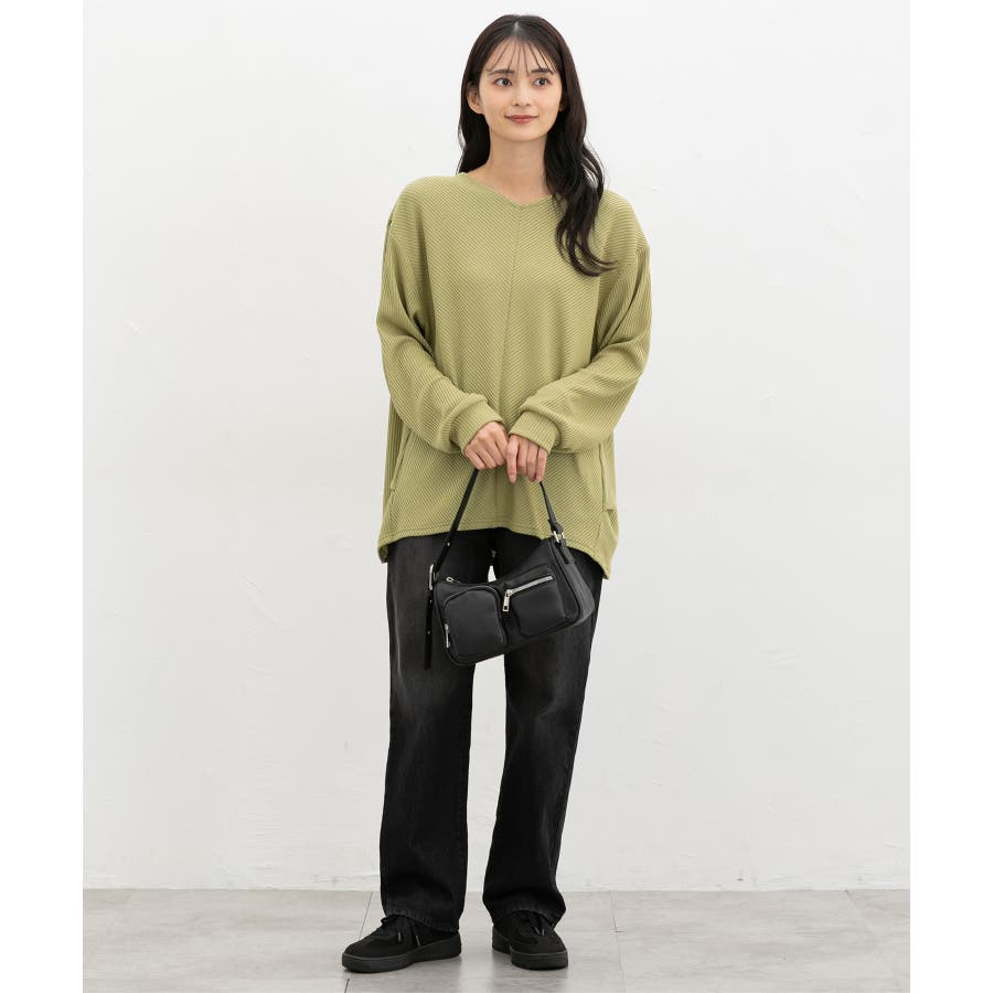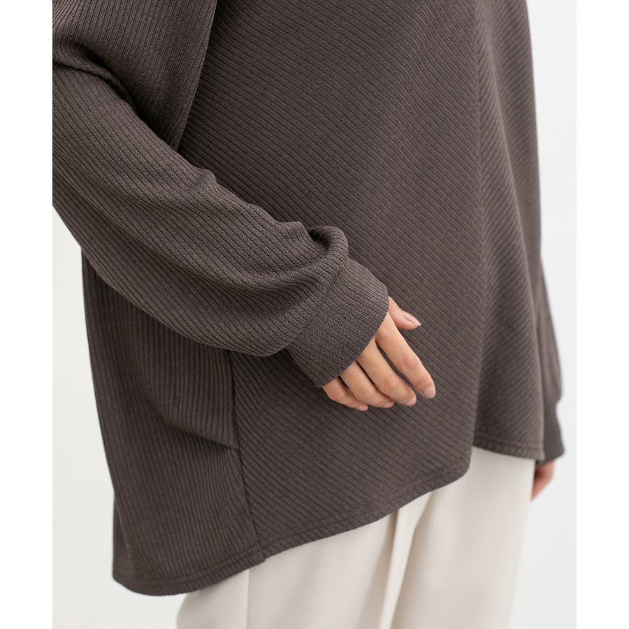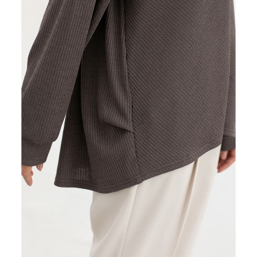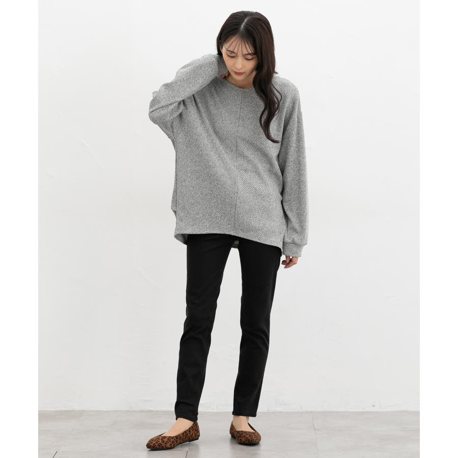 ゆったりした幅と、後ろラウンドのヒップまで隠れる丈感で体型もカバー。