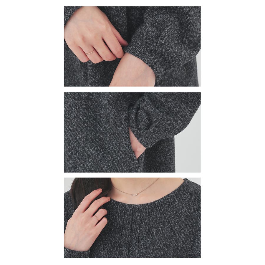 控えめに広がるAラインシルエットに、胸元のピンタックがおしゃれなデザイン。