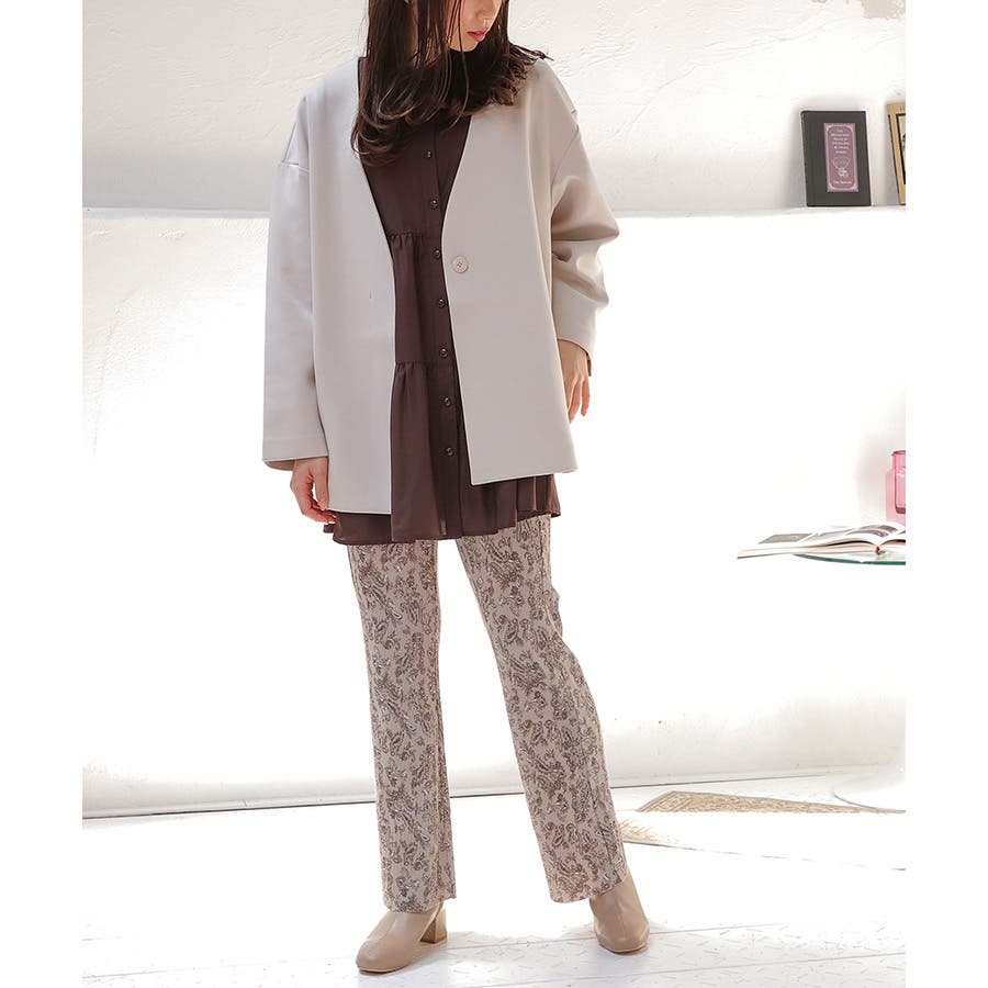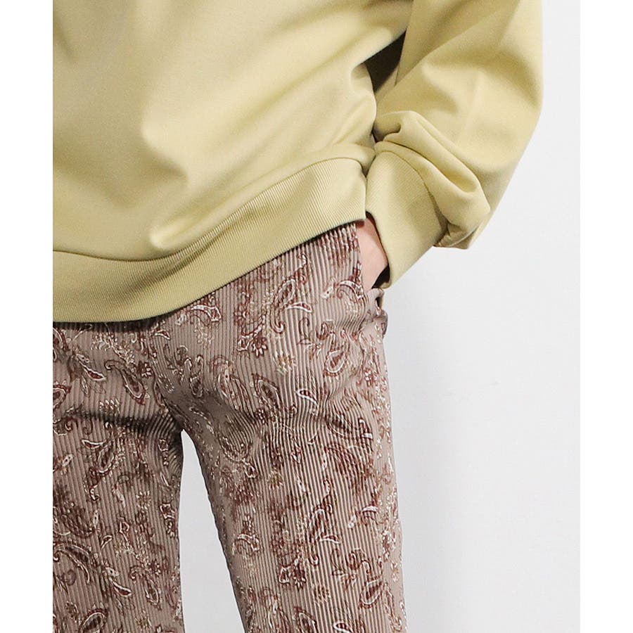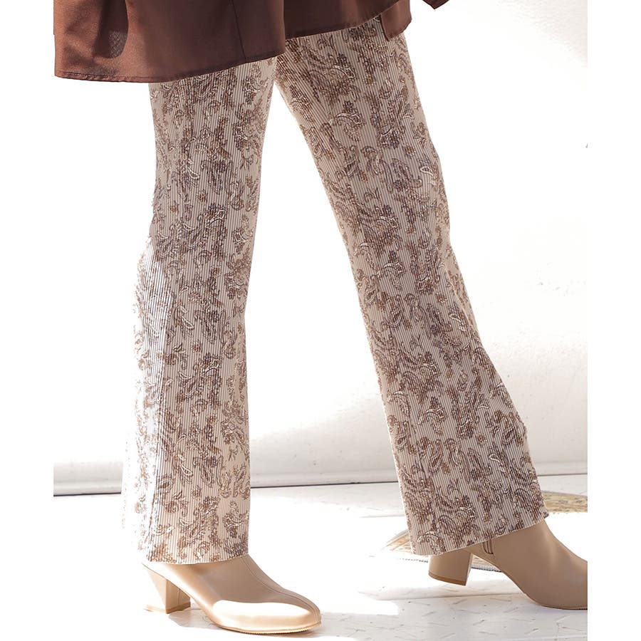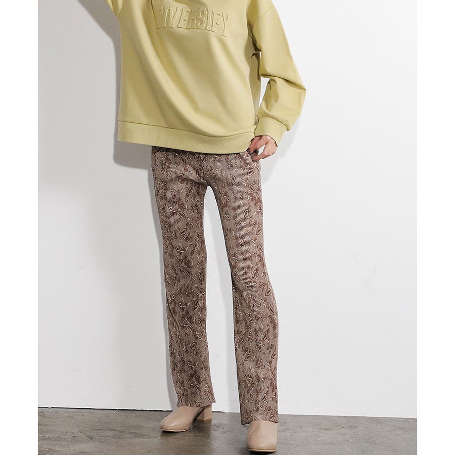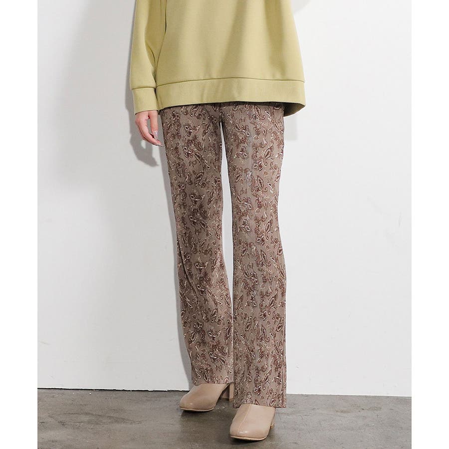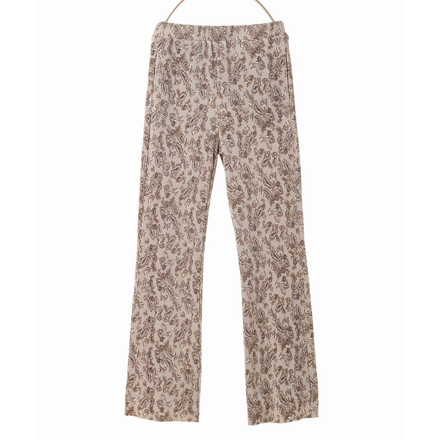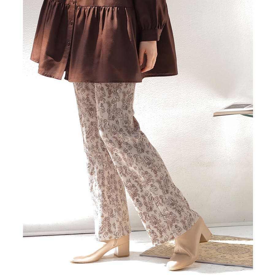 コーディネートのアクセントにぴったりな総柄プリーツパンツ。