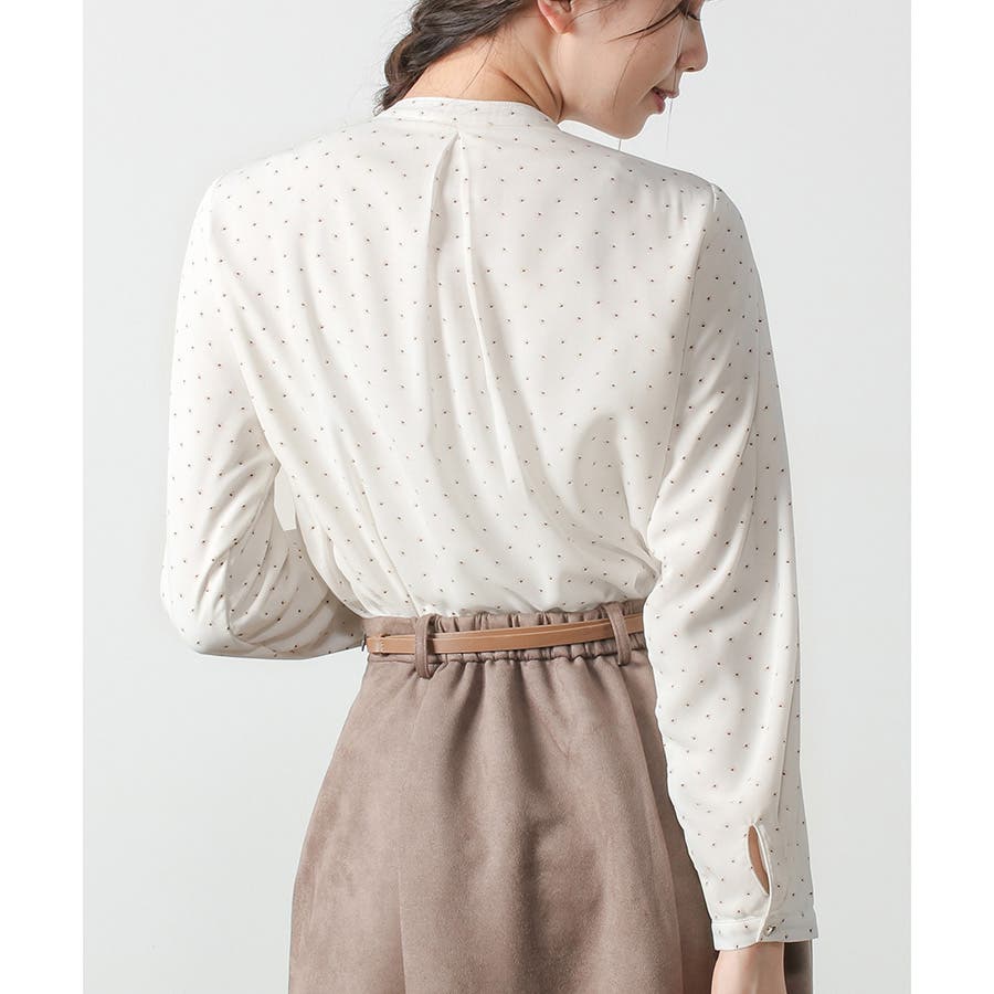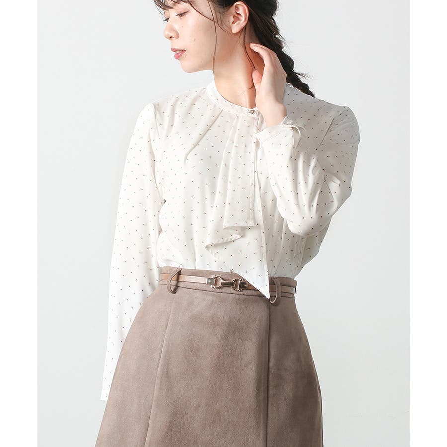 胸元のボウタイが華やかなトップス。