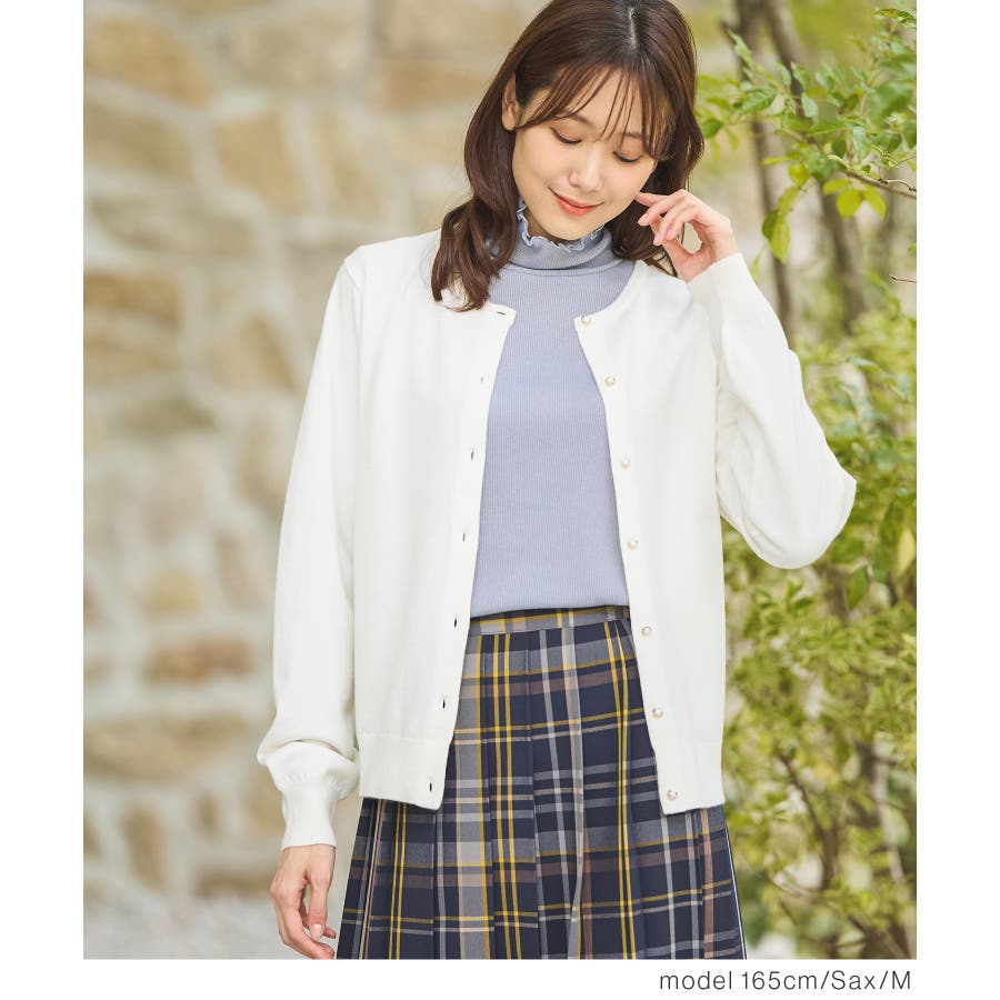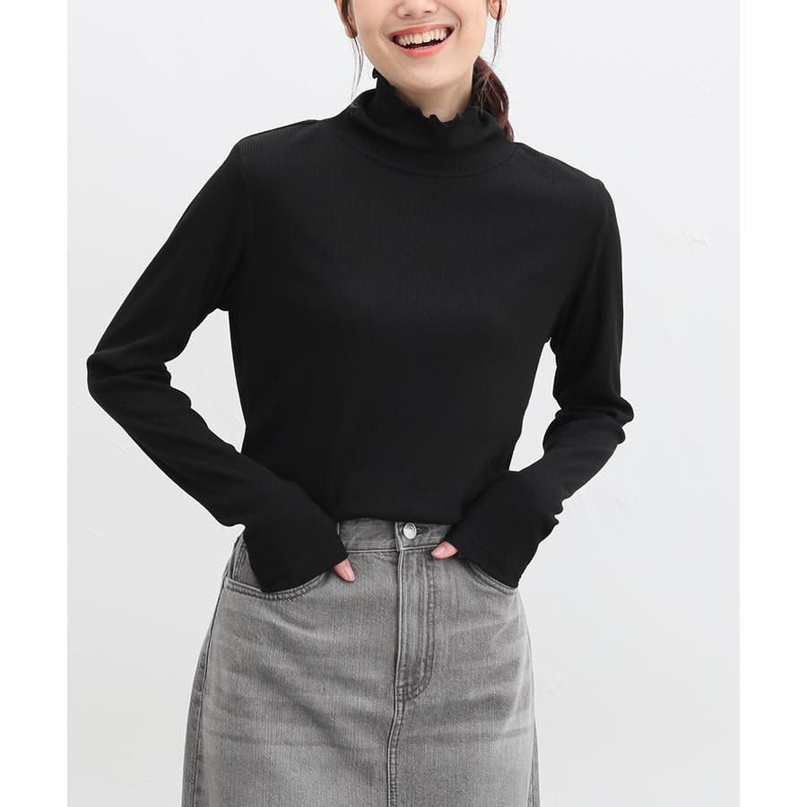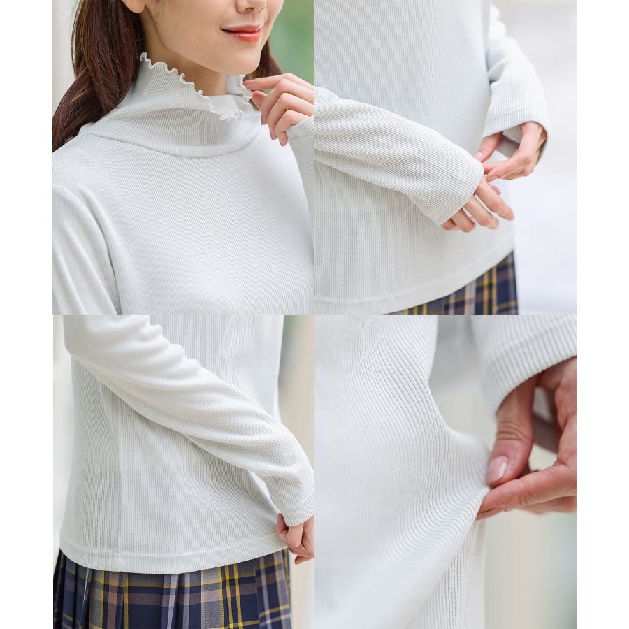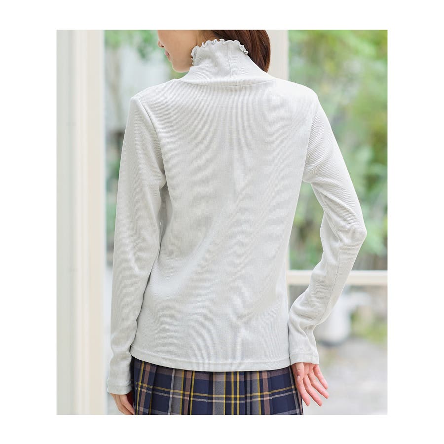 シンプルデザインに、衿ぐりのメローが大人可愛いアクセント。