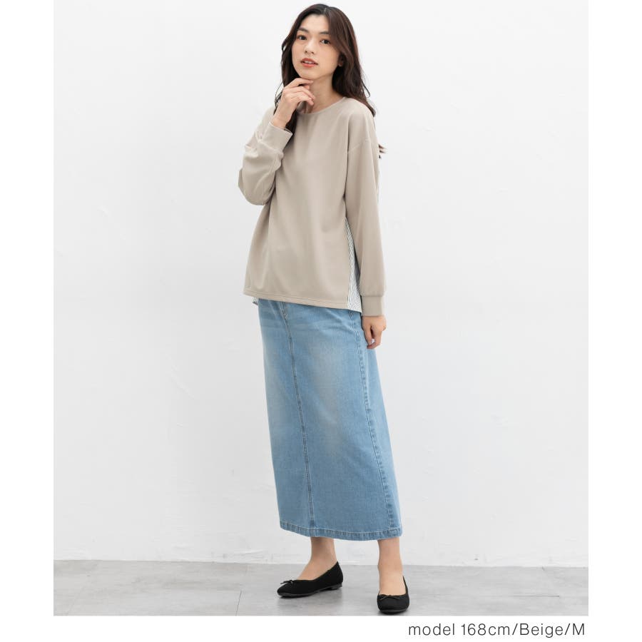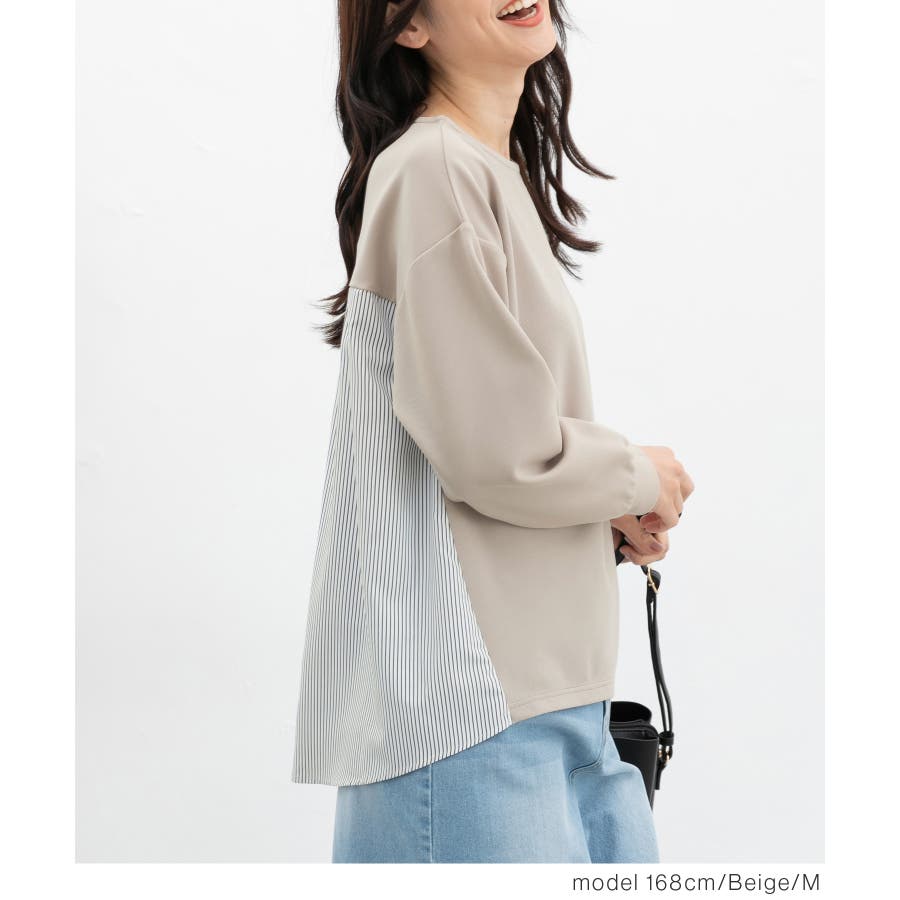 バックをストライプ柄のシャツ生地で切り替えた、こなれ感のあるデザイン。