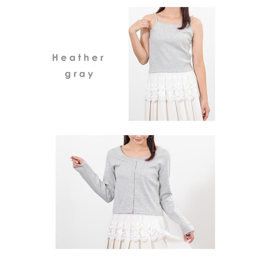 さっと重ね着すれば簡単にトレンドスタイルが完成する、カーディガン×キャミソールのセット。