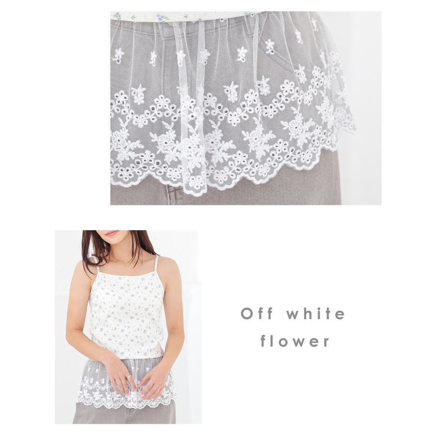 同素材のキャミソールはフェミニンなレースの裾フリル付き。