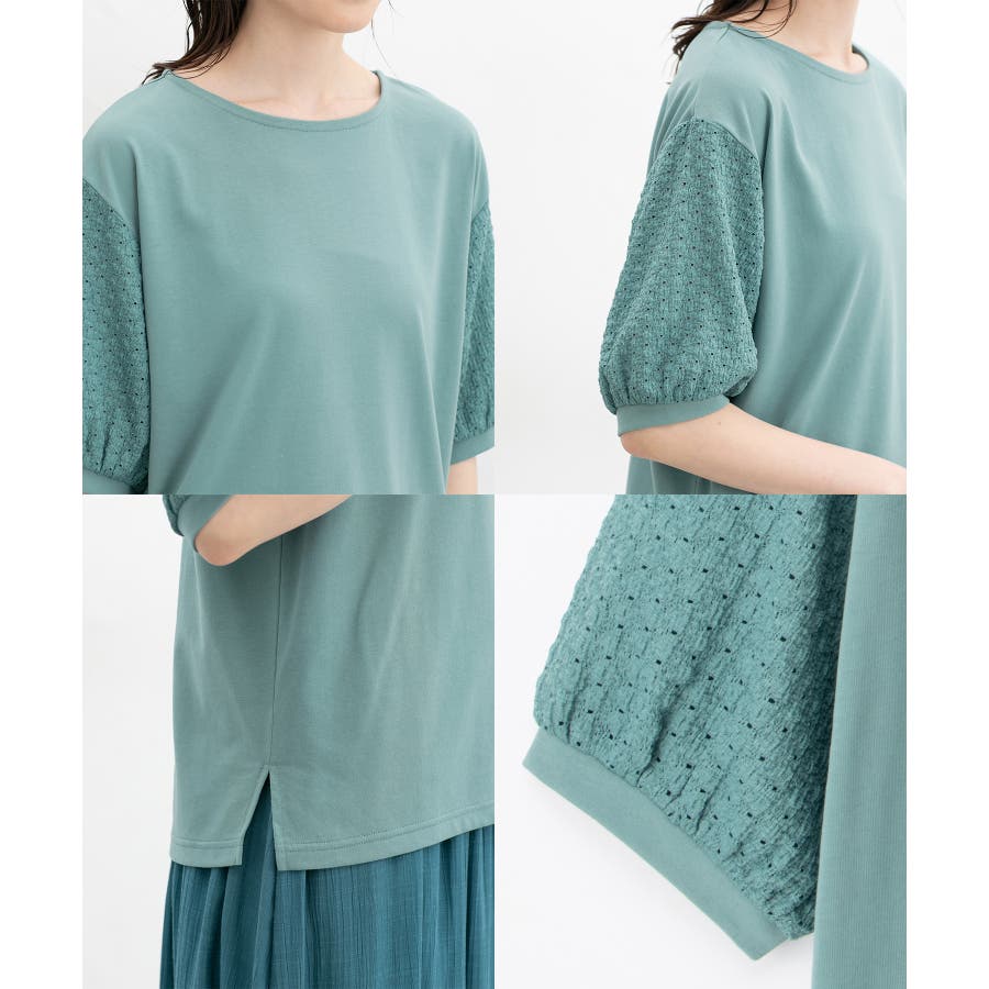 商品カテゴリ:5800139512 トップス カットソー ハニさら Tシャツ 半袖Tシャツ UVカット 接触冷感 吸水速乾 ドロップショルダー デザイン袖 ジャカード 無地 フェミニン 夏 白 黒 カテゴリ101005 tops プルオーバー 五分袖 5分袖 5部袖 5分丈 半袖 六分袖 6分袖 6部袖 6分丈 半端袖 快適 T-shirt ティシャツ 半袖カットソー Tシャツ半袖 快適シリーズ ひんやり 紫外線対策 紫外線カット 日焼け対策 機能素材 クールタッチ 冷感 涼しい cool クール 速乾ドライ 吸収 汗対策 汗 ゆる 肩落ち 袖コンシャス デザインスリーブ ジャガード ジグザグ ジャガード編み 無地トップス 無地Tシャツ 後ろ下がり ラウンドヘム 前後差 きれいめ 上品 可愛い おしゃれ 清楚 大人可愛い タグハニさら(HS-14) Sサイズ S 小さいサイズ Mサイズ Lサイズ LLサイズ LL 大きいサイズ FP701 ノンエイジ 10代 20代 30代 40代 50代 エイジレス 大人 シンプル スタンダード ベーシック ラフ 定番 カジュアル 大人カジュアル ママコーデ ママ 公園 ママファッション シーズン夏 夏物 夏服 夏秋 初秋 秋 秋物 秋服 新作 新着 オフ オフホワイト アイボリー ホワイト ブラック ネイビー 紺 ブルー 青 ピンク 桃色 スモーキーピンク ミント 緑 みどり グリーン スモーキーミント スモーキーグリーン 9512 580-13-9512 5800139512 CINEMACLUB シネマクラブ honeys ハニーズ レディースファッション ladies fashion 女性 女 レディース ファッション 女性服 服 婦人服 580013951231 袖デザインTシャツ 価格1480