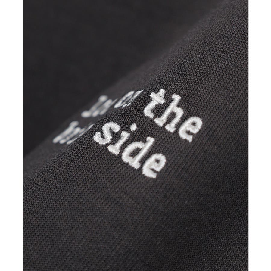 胸元のさりげないロゴ刺繍がアクセント。