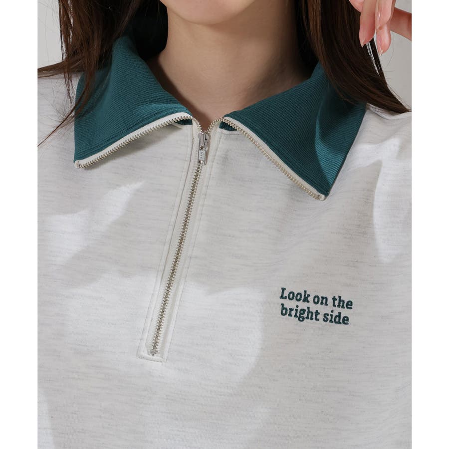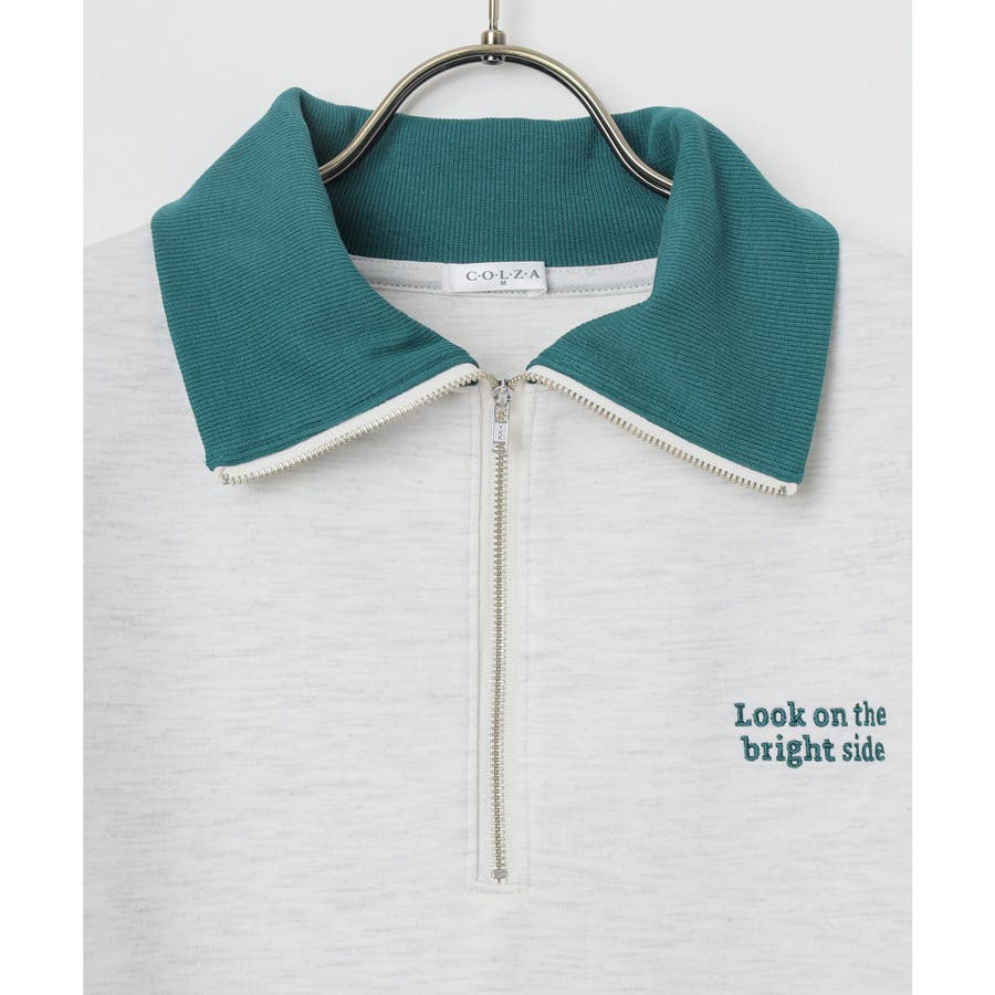 ハーフジップ×配色衿が今年らしいデザイン。
