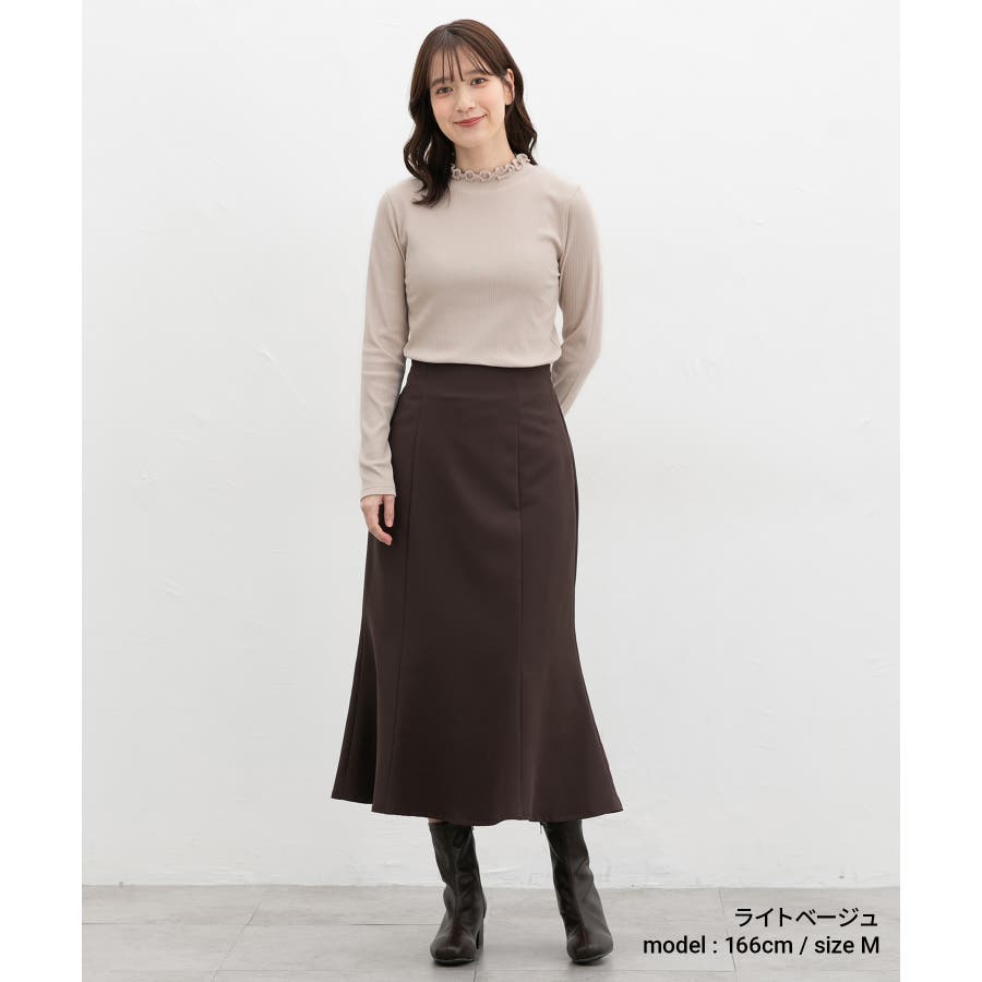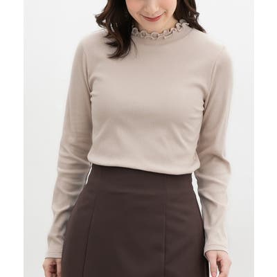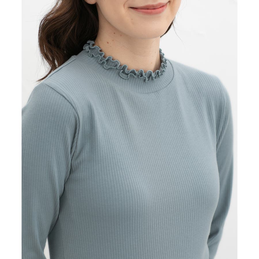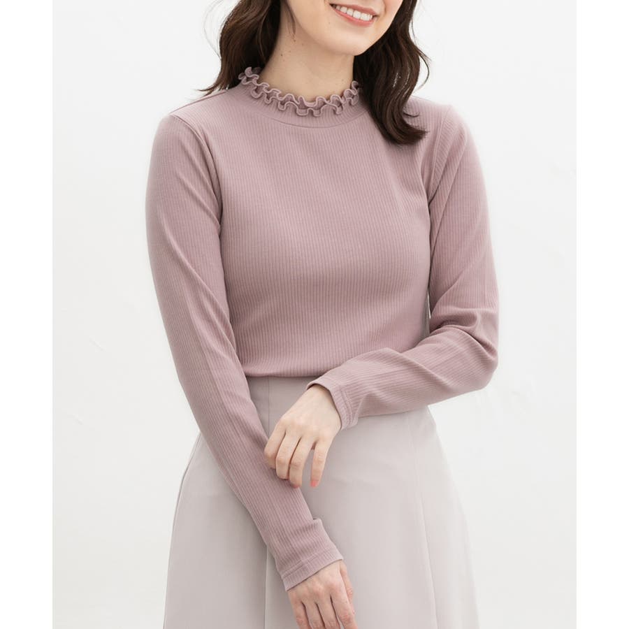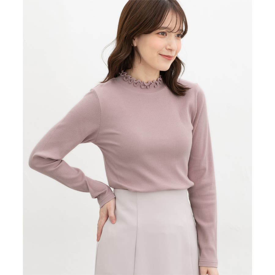 首元を隠してあったかな、程よい高さのプチハイネックを、2枚重ねのメローフリルでフェミニンに。