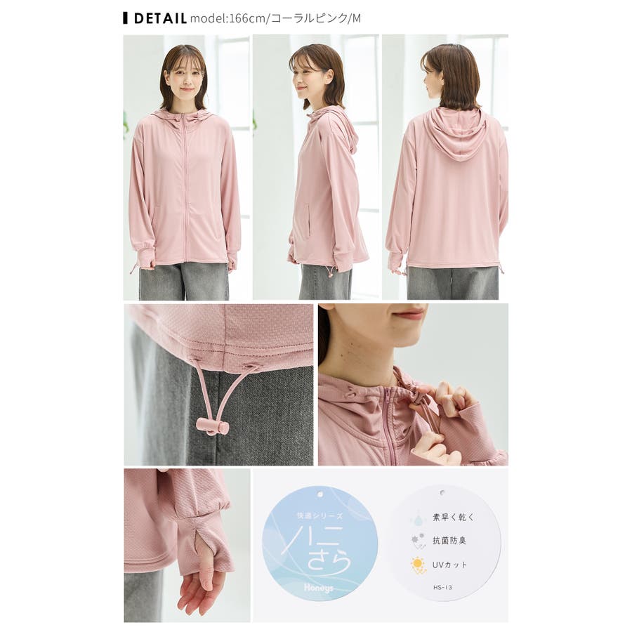 素早く乾く『速乾ドライ』と、気になる菌やにおいにも安心の『抗菌防臭』、紫外線対策ができる『UVカット』の機能機能が付いた『ハニさら』アイテム。