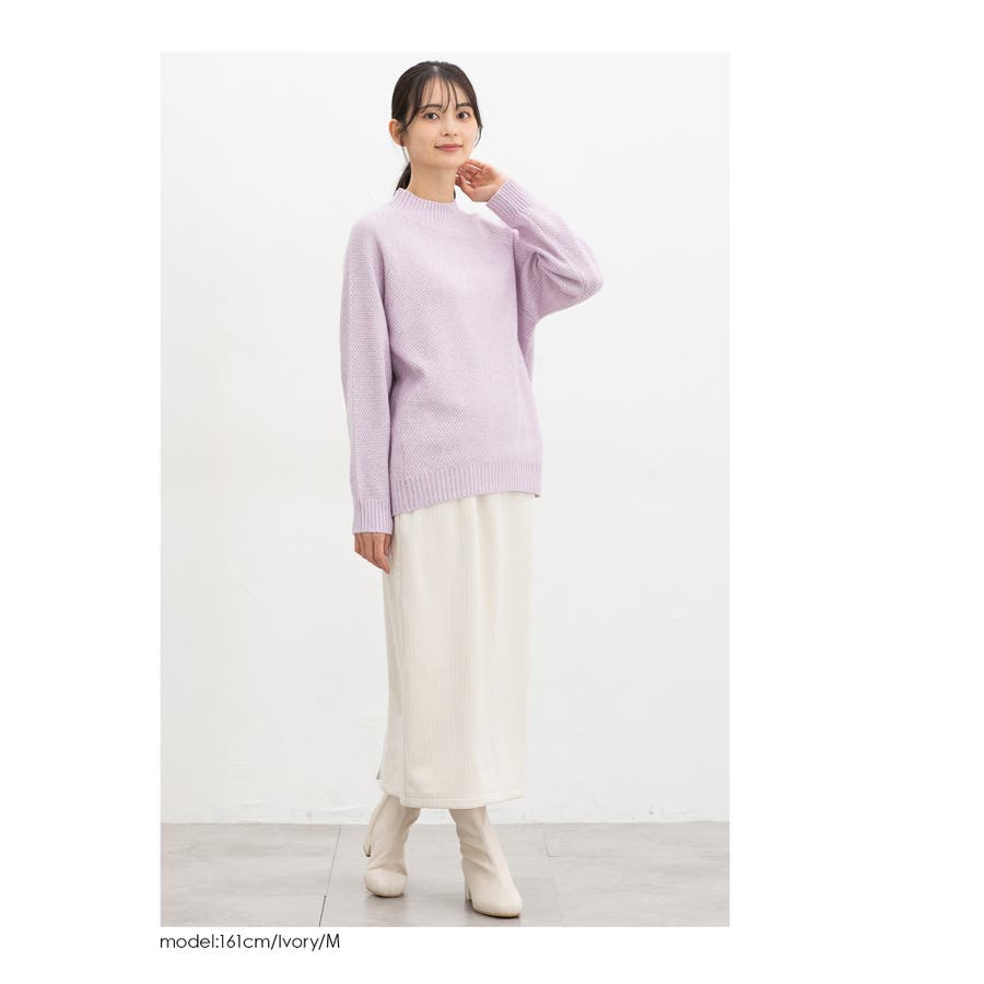 縦の編み目とストンとしたIラインシルエット、長めの丈感で、スタイルアップも叶うお洒落なデザイン。