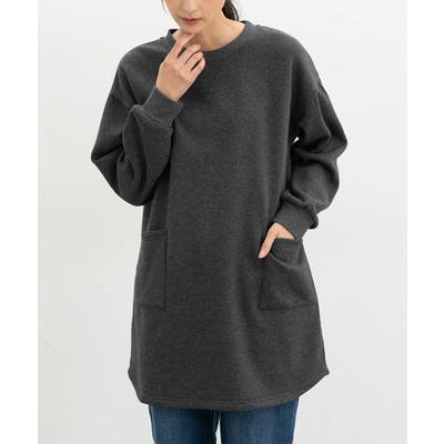 クルーネックのシンプルデザインに、大きめポケットがアクセント。