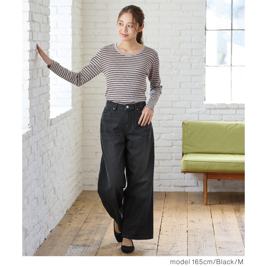 ややワイドなシルエットで、脚のラインを隠しながらスタイルアップ効果も◎