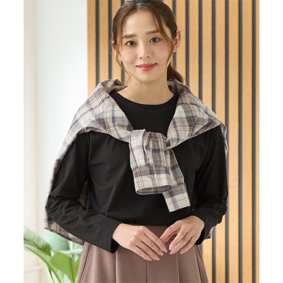 ベーシックなクルーネックで、ゆったりめの幅と腰回りが隠れる丈感。