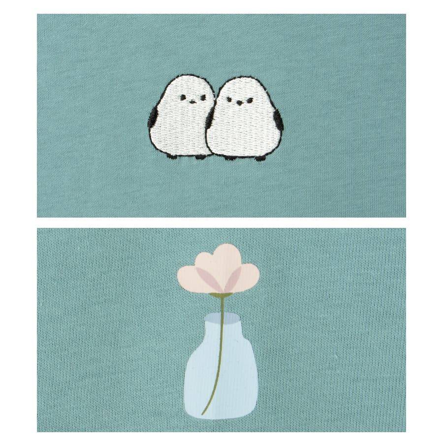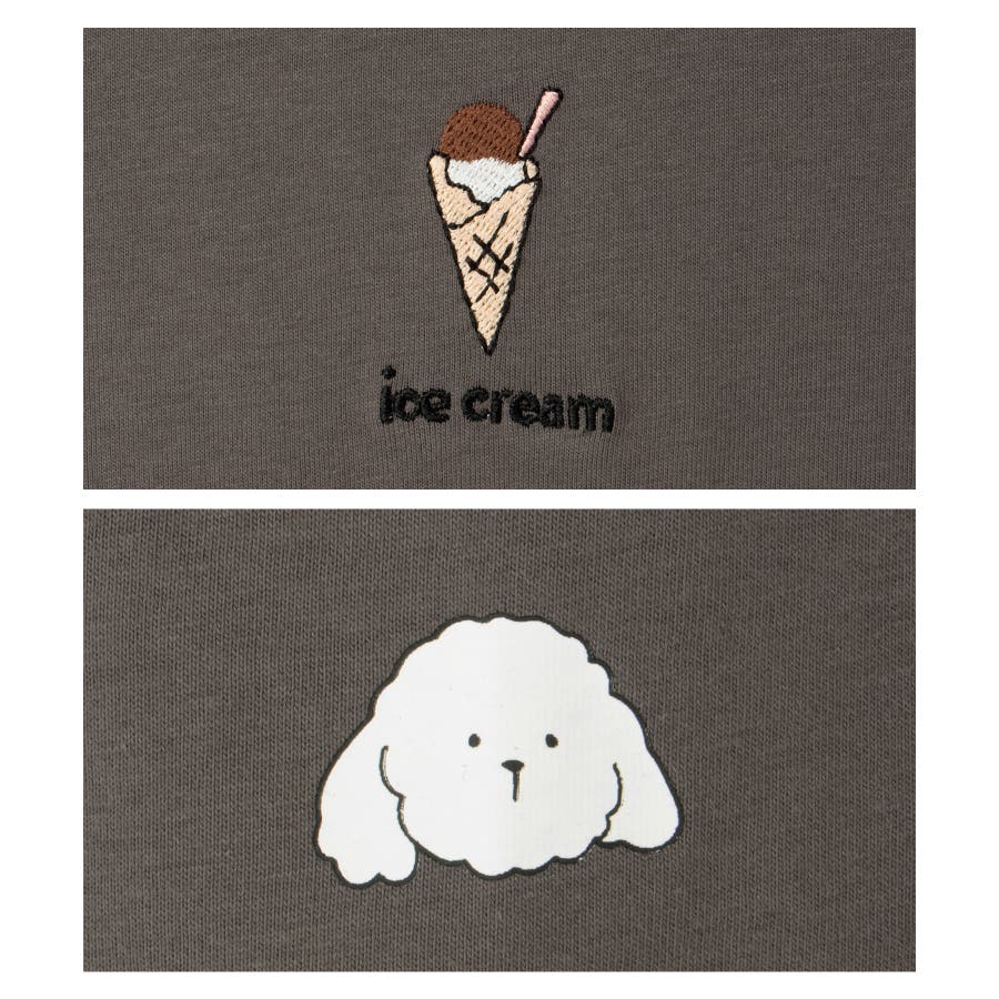 胸元やバック、袖のゆるかわモチーフ刺繍&プリントと、抜け感のあるスリットがお洒落なデザイン。