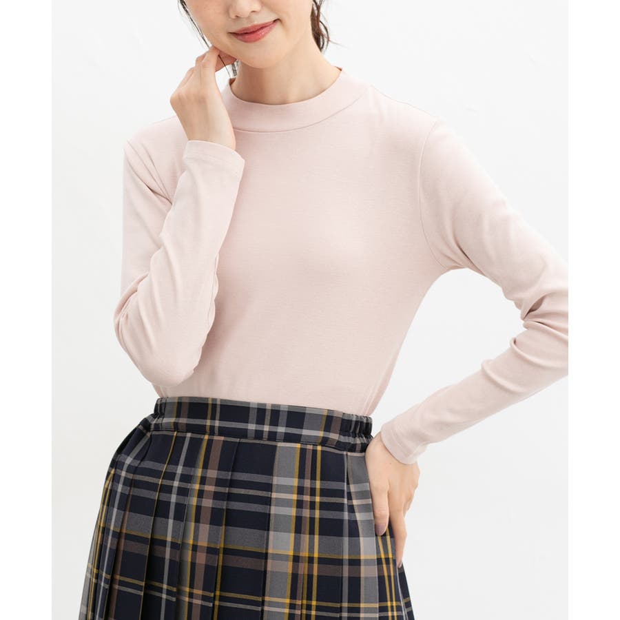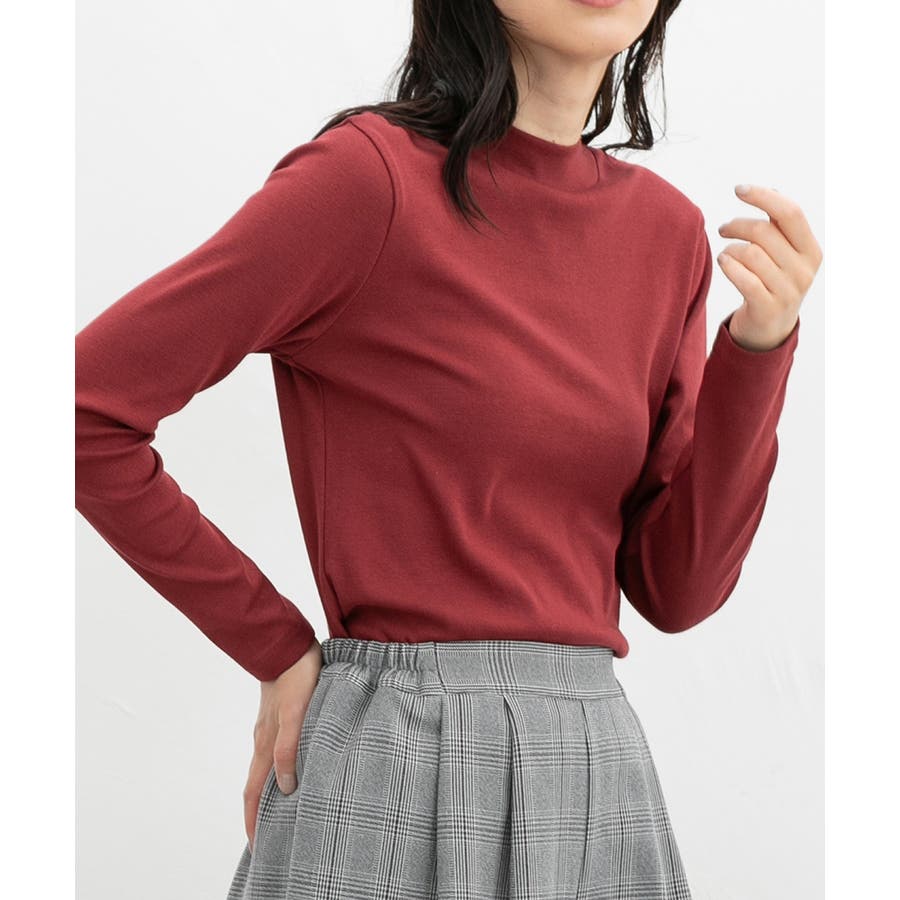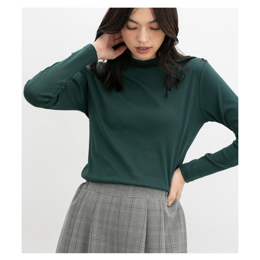 首元を程よく隠すプチハイネックがこなれた印象のシンプルデザイン。