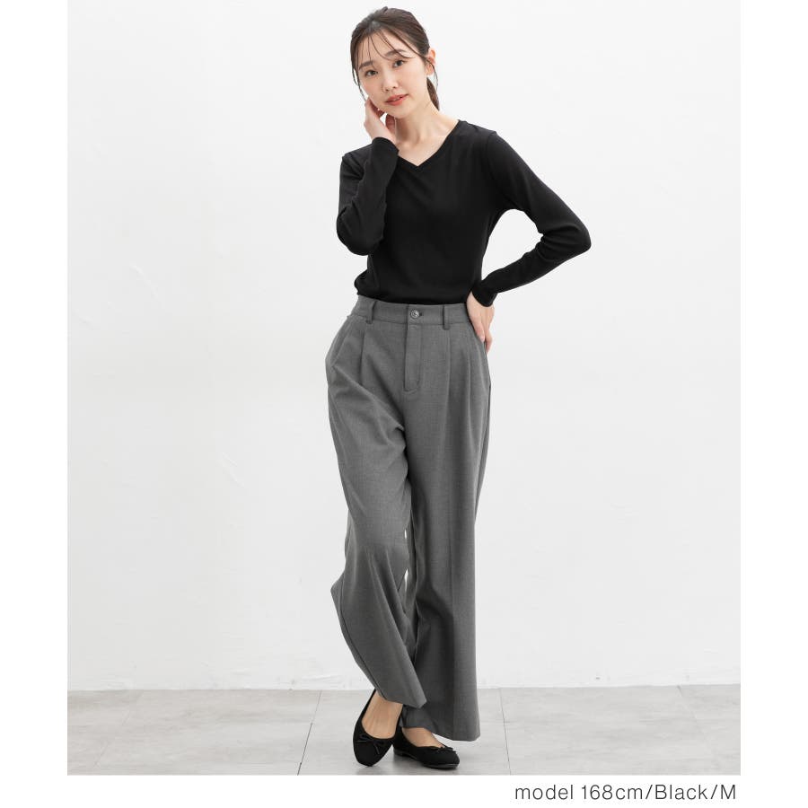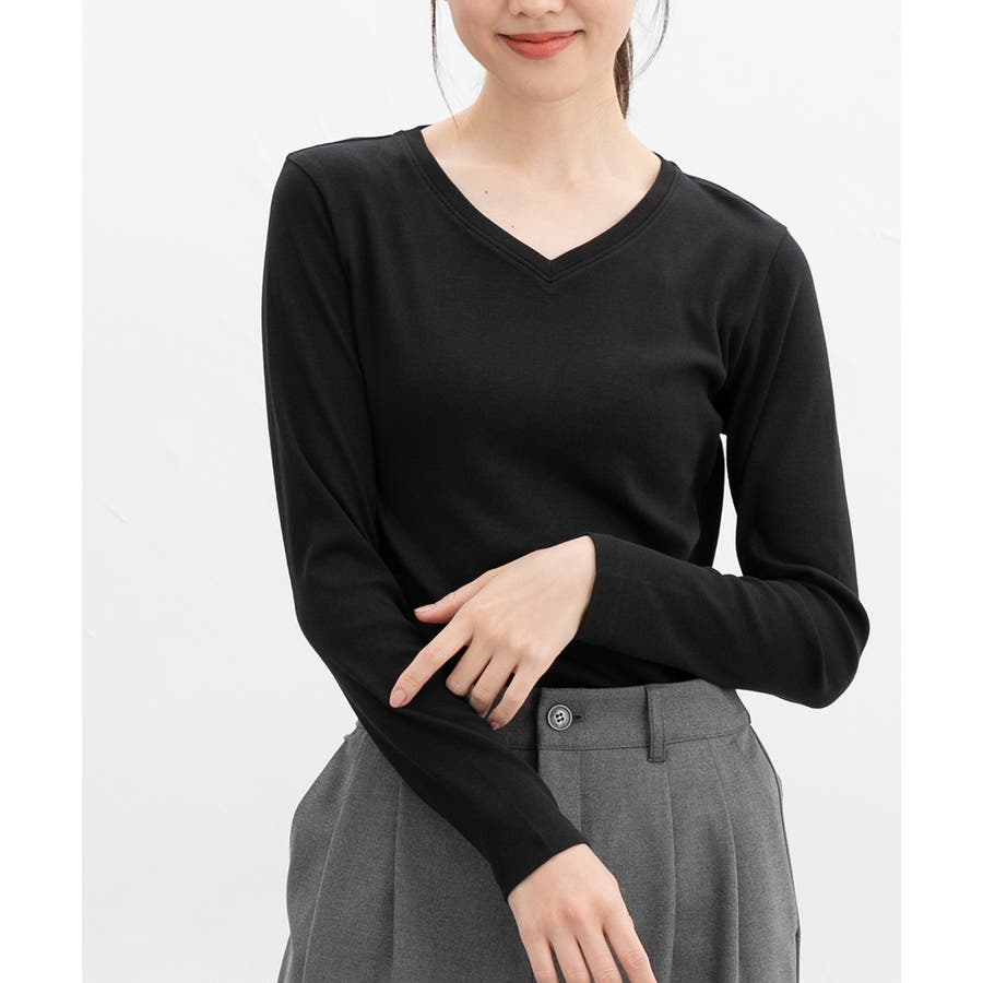 デコルテをきれいに見せる、開きすぎないVネックのスタイリッシュなシンプルデザイン。