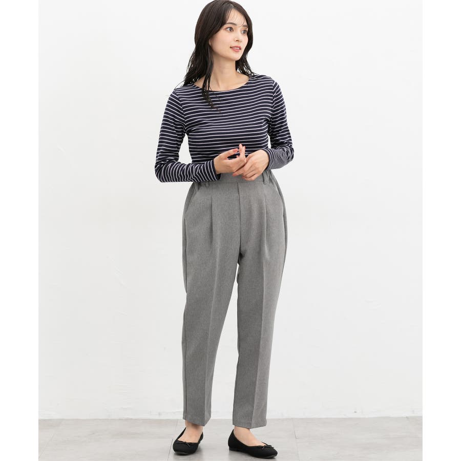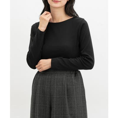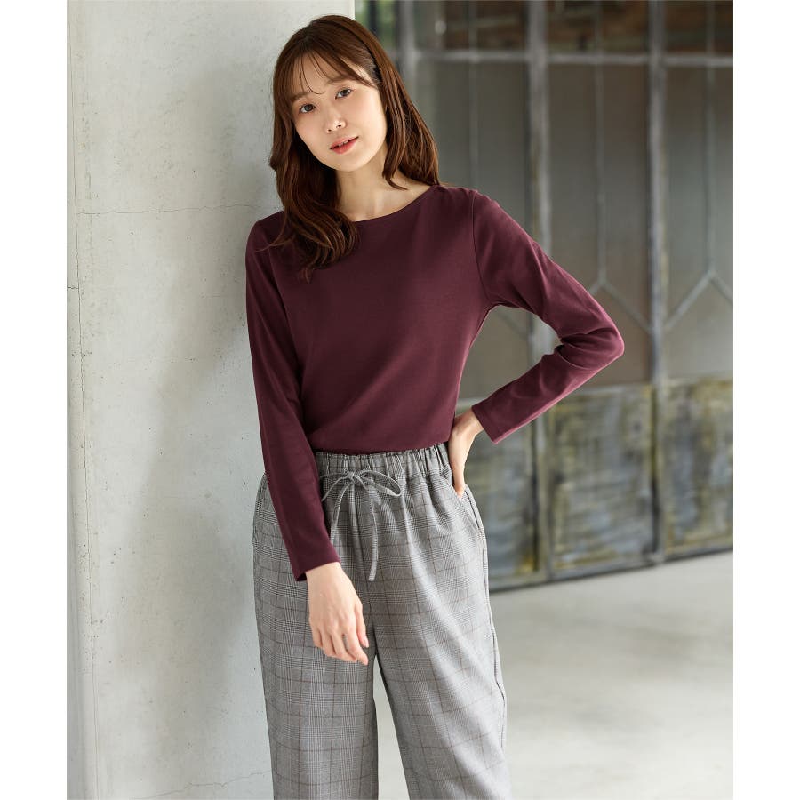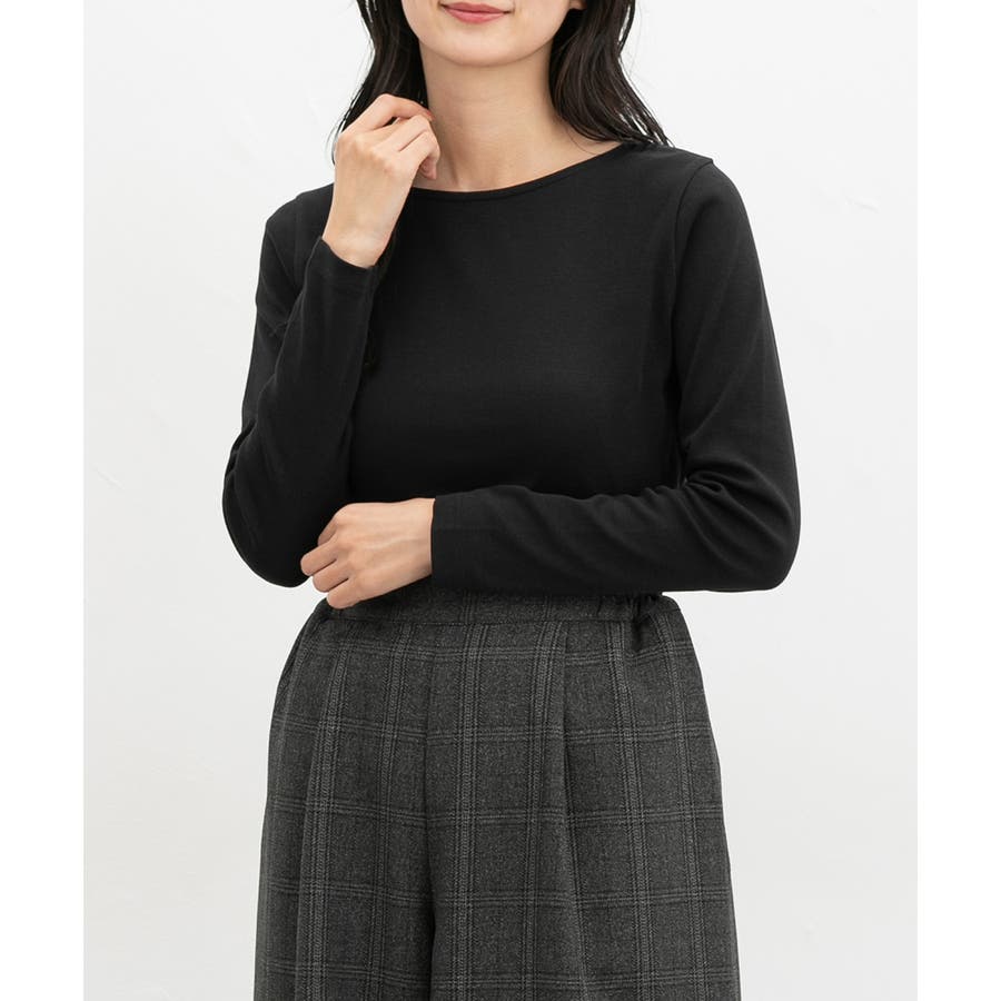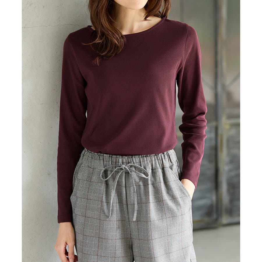 デコルテをきれいに見せる、開きすぎないボートネックのシンプルデザイン。