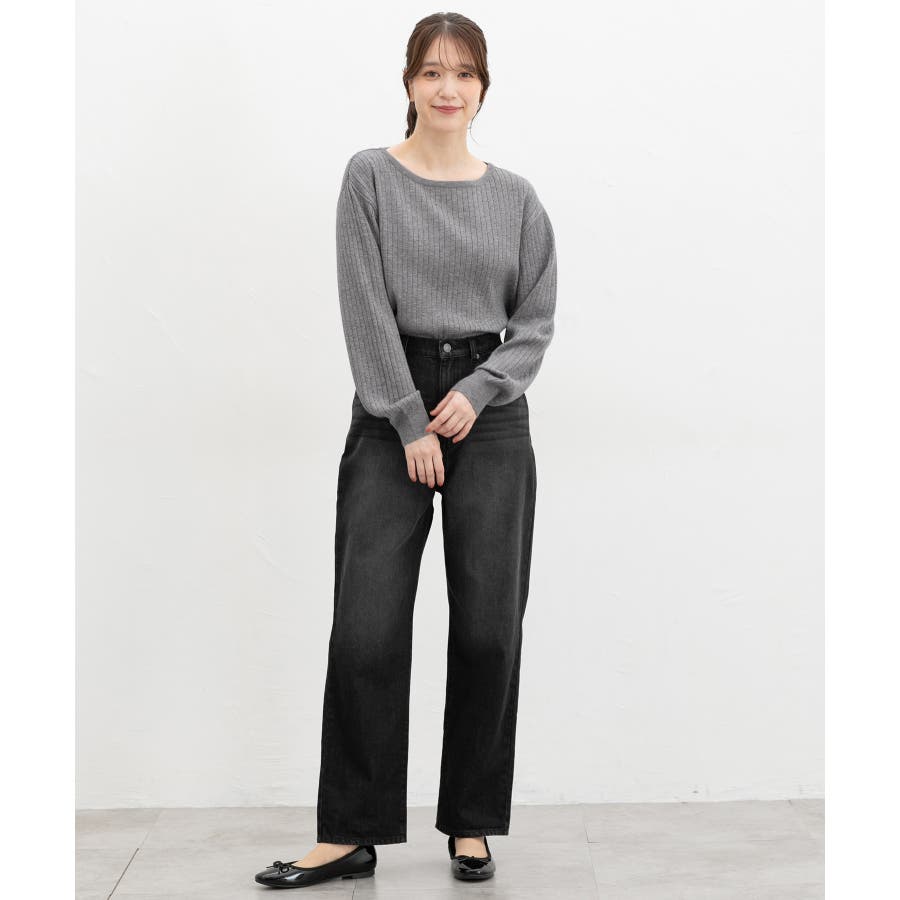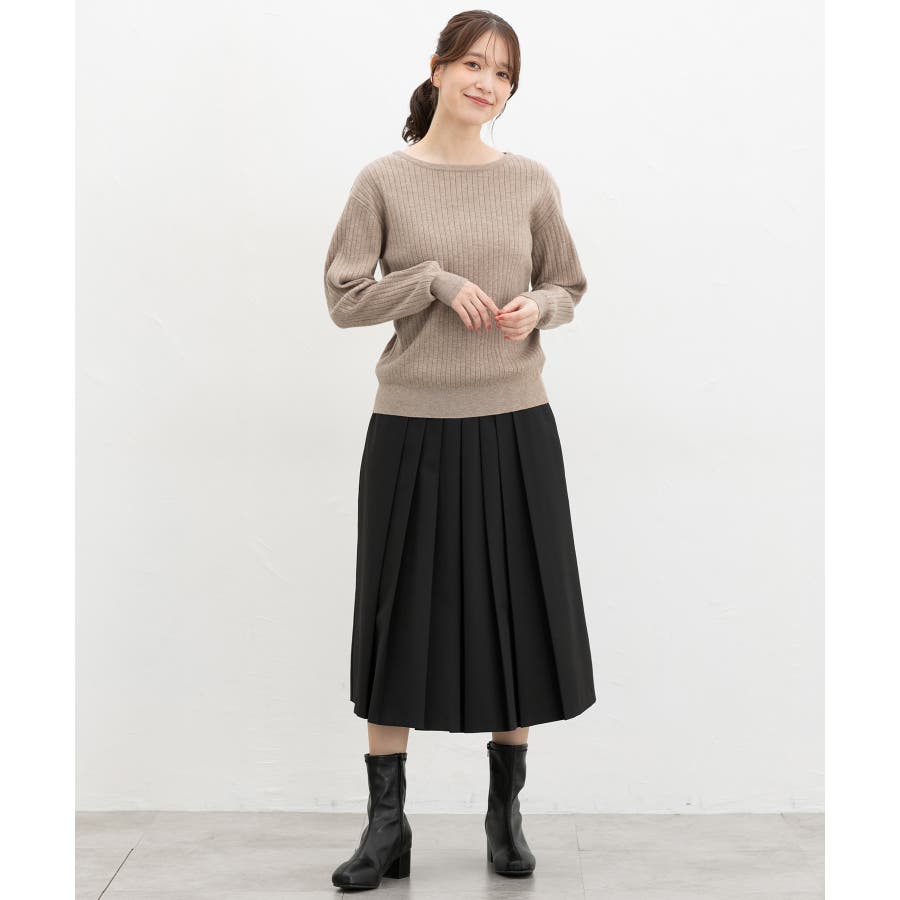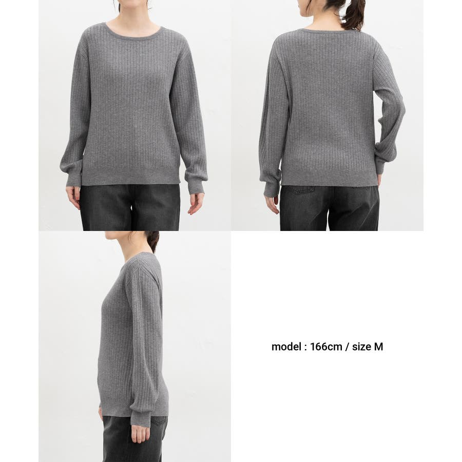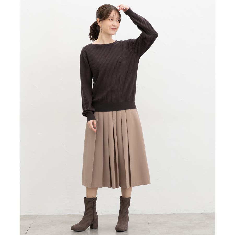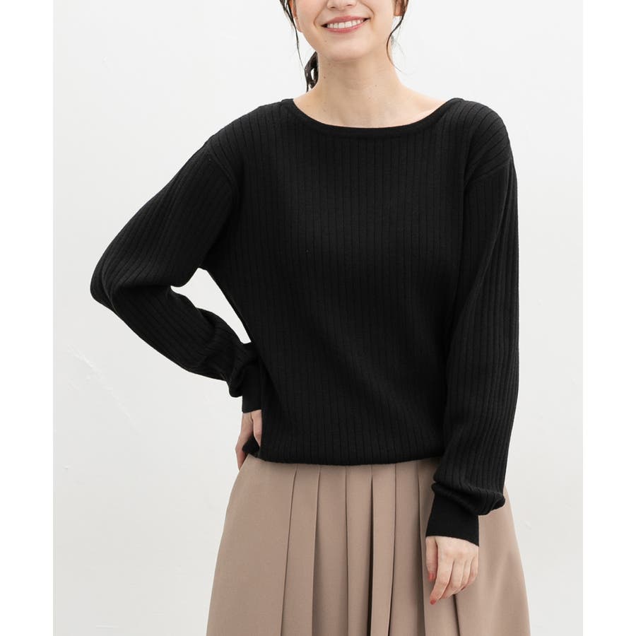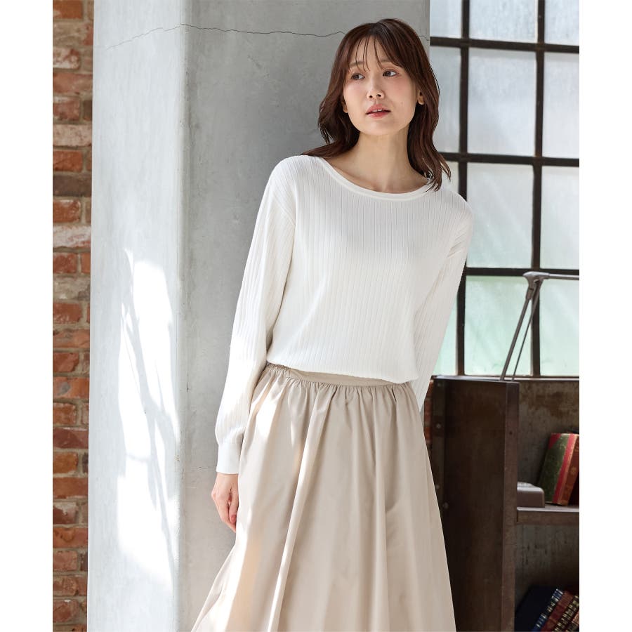 首回りがきれいに見えるボートネックのシンプルデザイン。