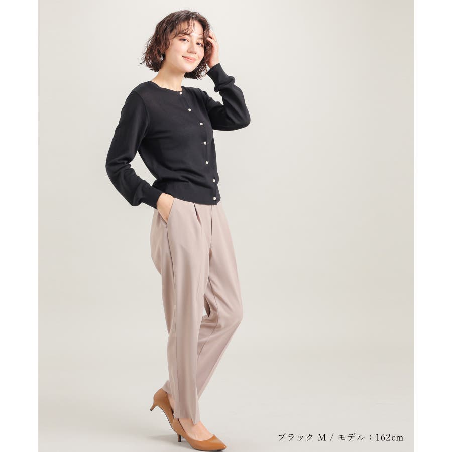 ジャケットにも合うサイズ感で、ブラウスと合わせた通勤きれいめスタイルから、Tシャツ合わせのカジュアルスタイルまで幅広い着回しに活躍。