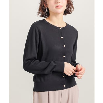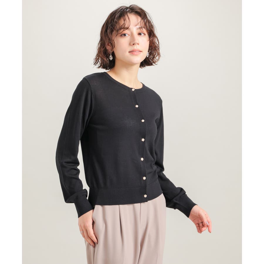 クルーネックのシンプルデザインに、ビジューボタンで華やかさをプラス。