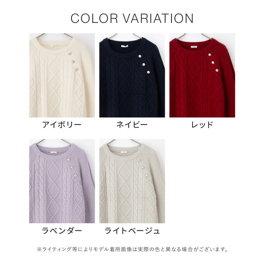 商品カテゴリ:6360311536 トップス ニット セーター 長袖 大きいサイズ ケーブル編み 片畔編み ゴールドボタン アクリル クルーネック カジュアル 冬 白 カテゴリ104010 tops sweater プルオーバー 長そで XLサイズ 3Lサイズ XL 3L ケーブル ケーブルニット 立体的 金釦付ケーブル編みニット 金釦付きケーブル編ニット 金釦付きケーブル編みニット ゴールド釦 丸首 ラウンドネック Uネック シンプル フェミニン 大人可愛い フェミカジュ おしゃれ 大人カジュアル Sサイズ S 小さいサイズ Mサイズ Lサイズ LLサイズ LL FP501 大人 20代 30代 40代 50代 アラサー アラフォー アラフィフ OL トレンド 流行 シーズン冬 冬物 冬服 冬春 初春 春 春物 春服 新作 新着 アイボリー ホワイト ネイビー 紺 ブルー 青 レッド 赤 ラベンダー 紫色 パープル ベージュ 肌色 ライトベージュ 1536 636-31-1536 6360311536 GLACIER グラシア honeys ハニーズ レディースファッション ladies fashion 女性 女 レディース ファッション 女性服 服 婦人服 636031153631 金釦付ケーブル編ニット 価格2980