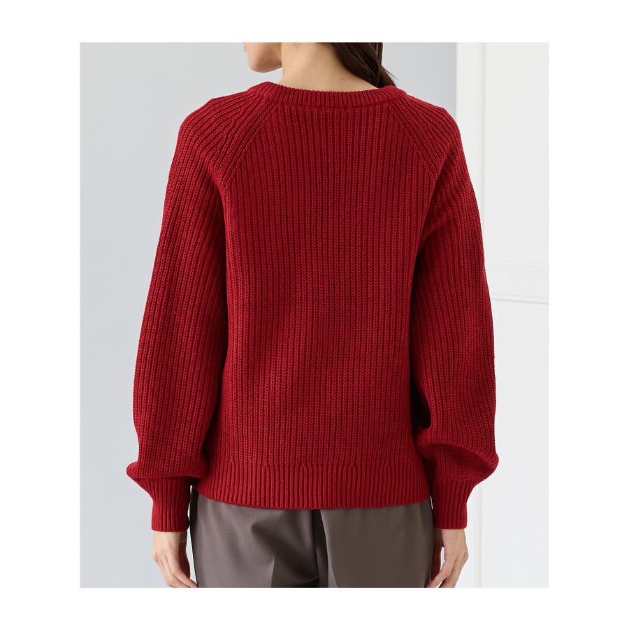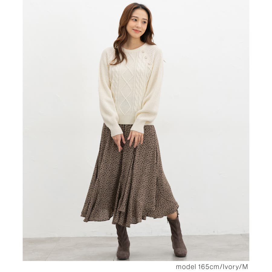 立体感のあるケーブル編みと片畦編みの異なる編地が大人可愛いデザイン。