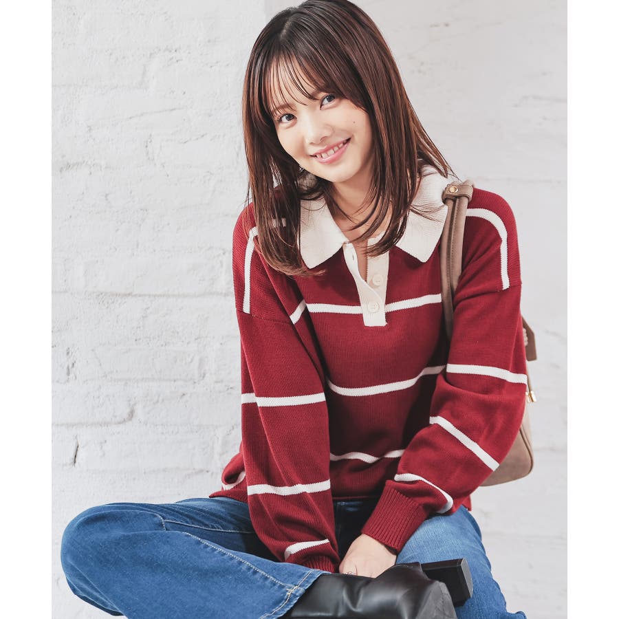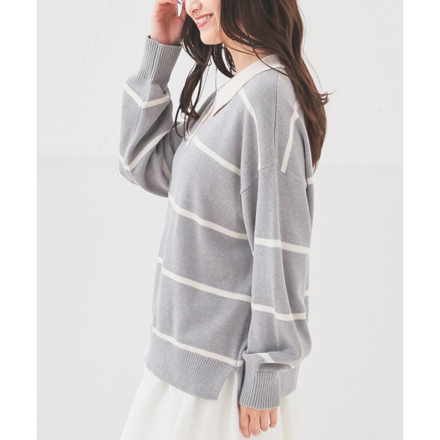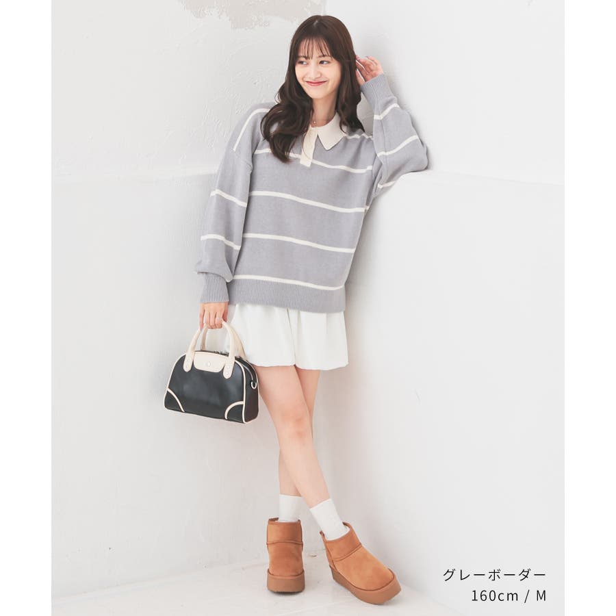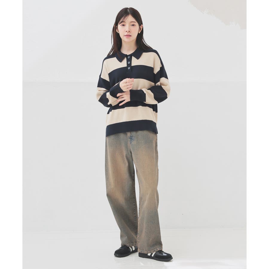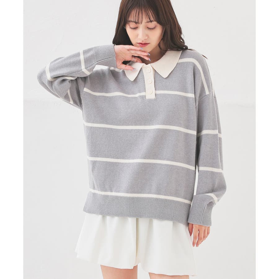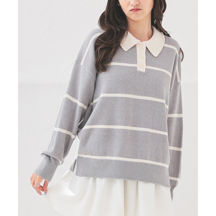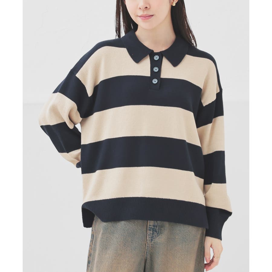 きちんと感のある衿付きデザインを、ゆるシルエットとボーダーでカジュアルな雰囲気に。