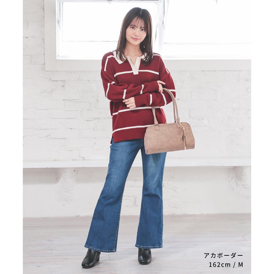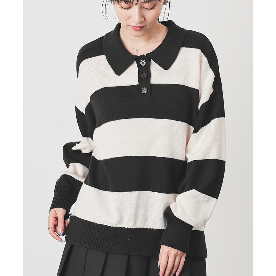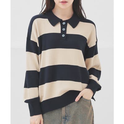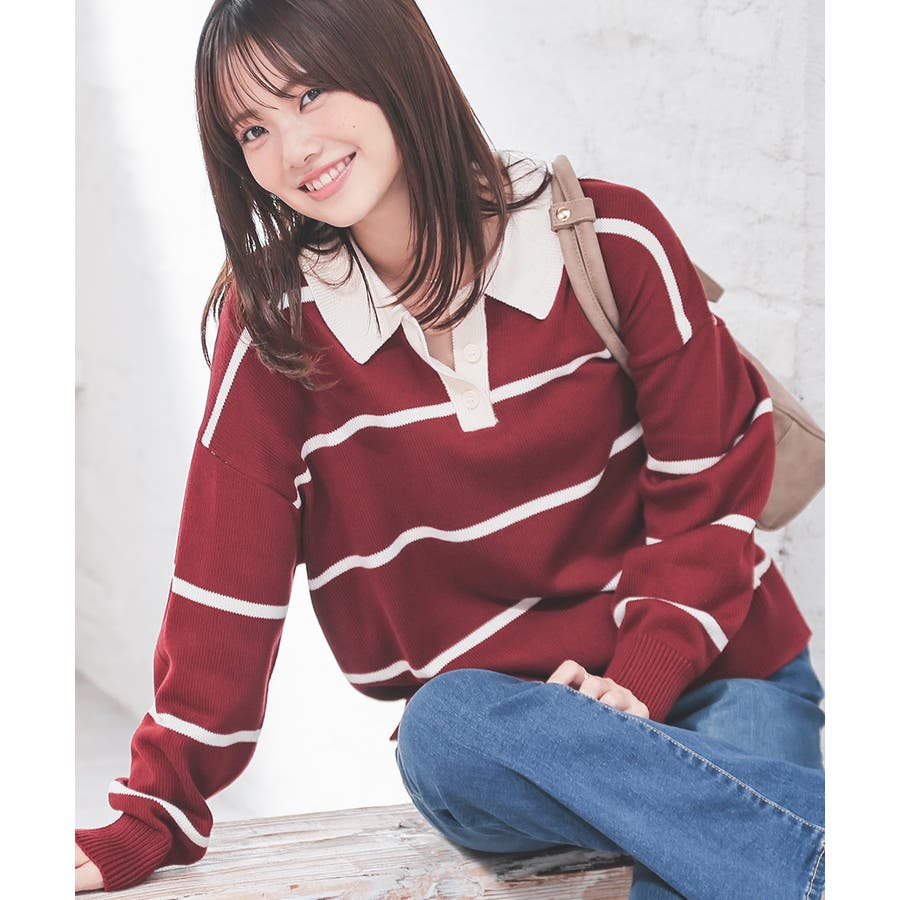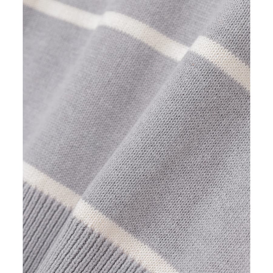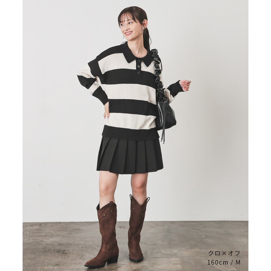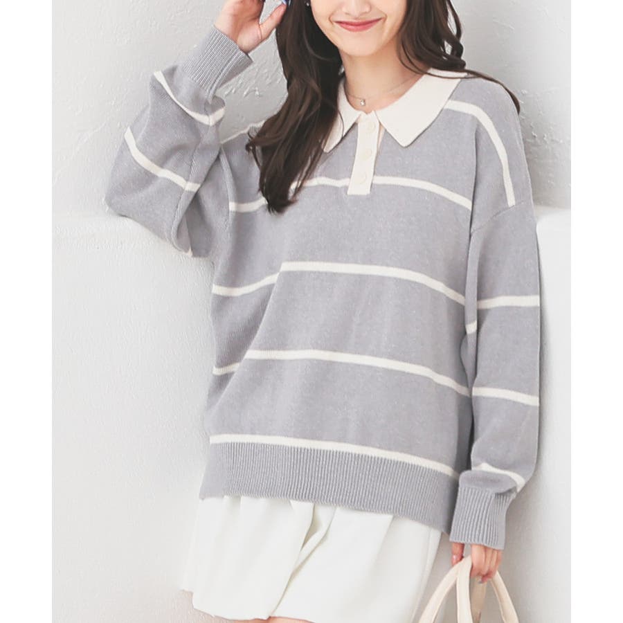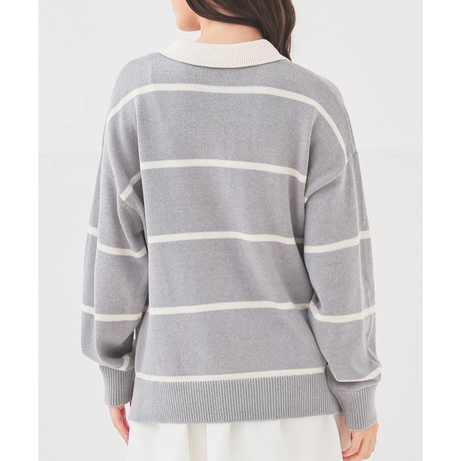 きちんと感のある衿付きデザインを、ゆるシルエットとボーダーでカジュアルな雰囲気に。