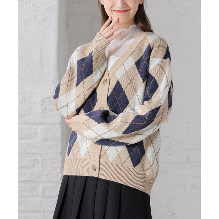 1枚で着映えする、チェックやアーガイルなどの華やかな総柄デザイン。