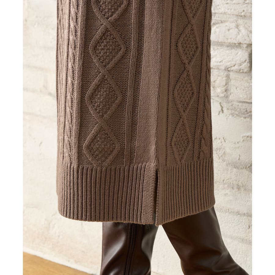 温もりあふれるケーブル編みが大人可愛いデザイン。