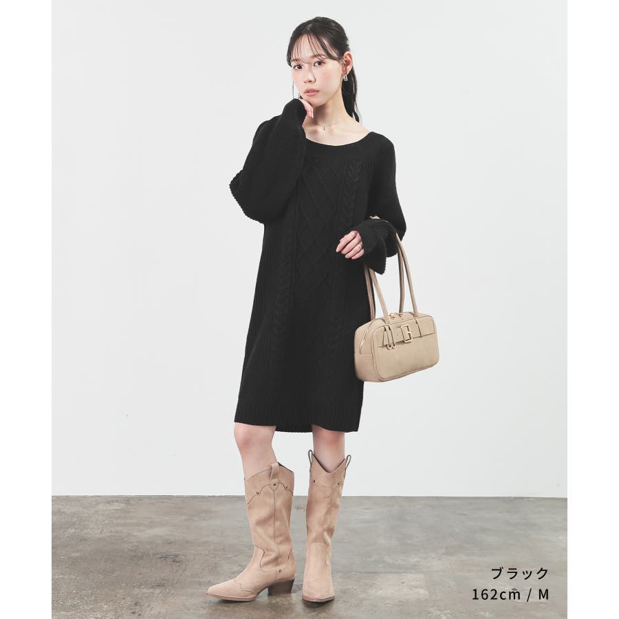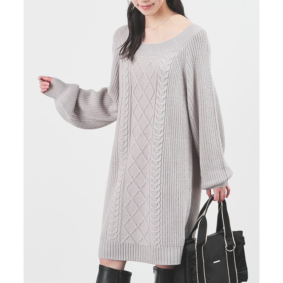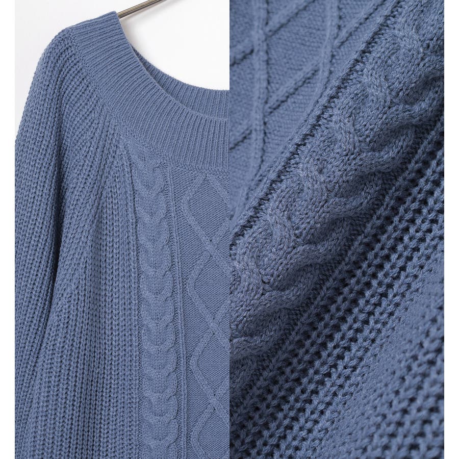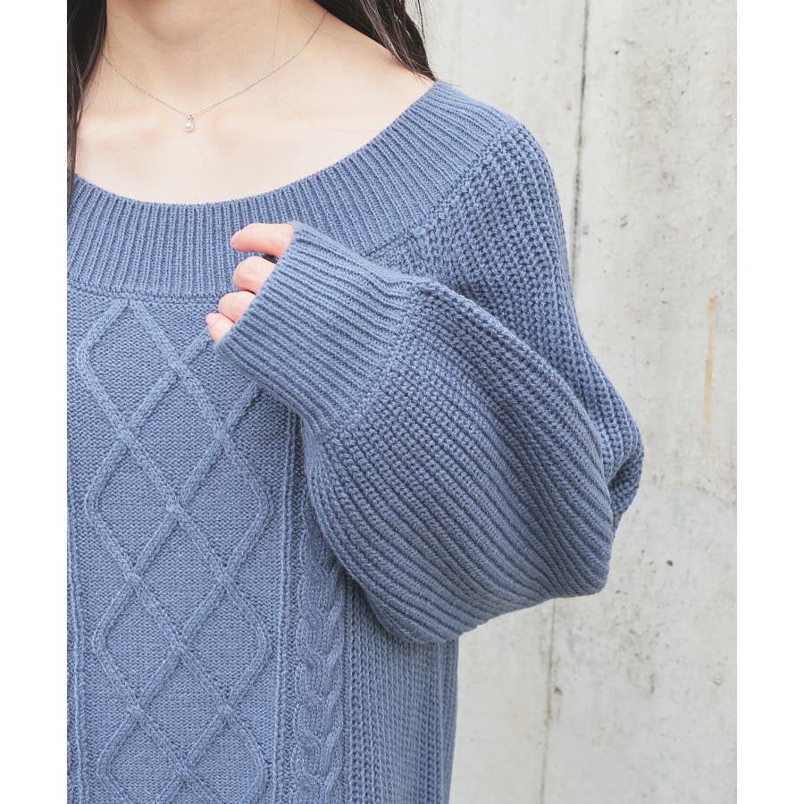 ざっくりとしたケーブル編みとふんわりボリューム袖がポイント。