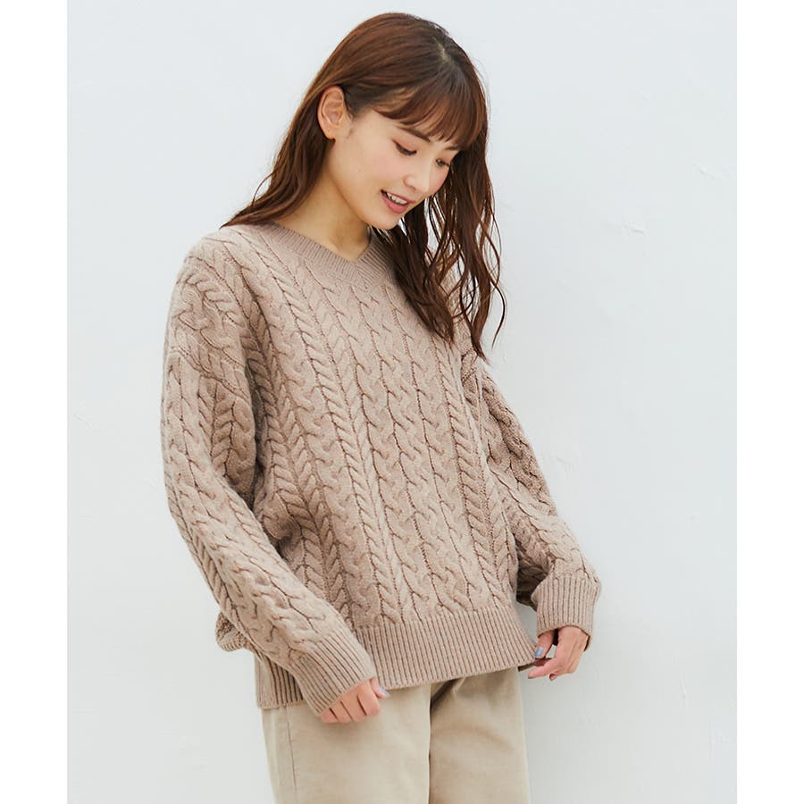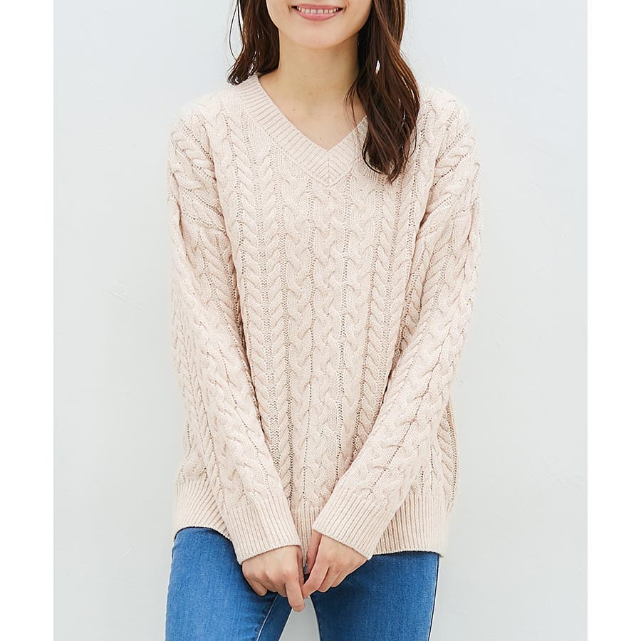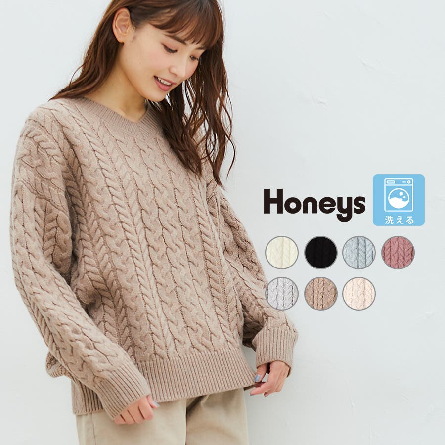 【ハニーズ】ケーブル編Vネック
