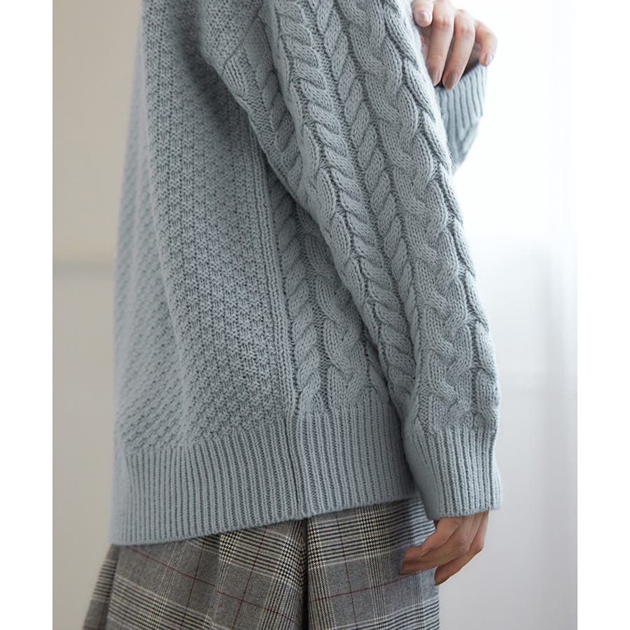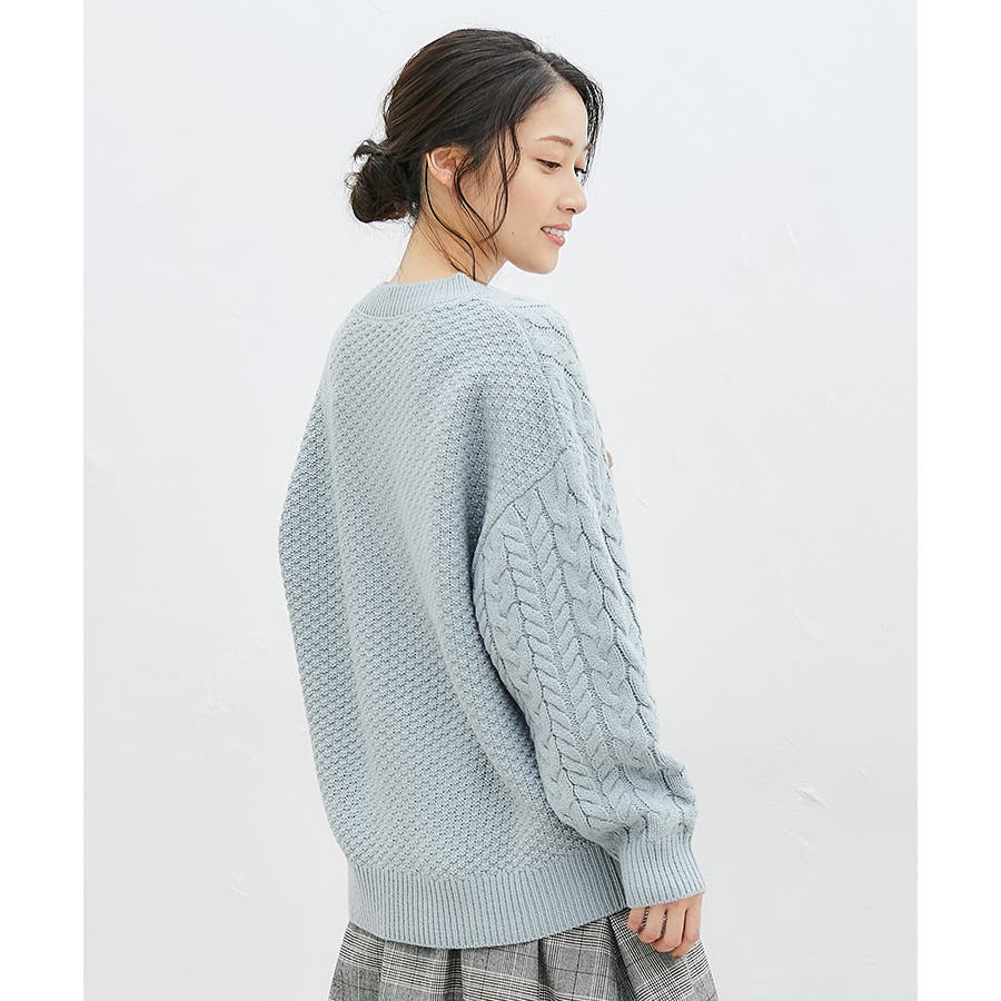 ケーブル編みとバスケット編みが前後で楽しめるトップス。