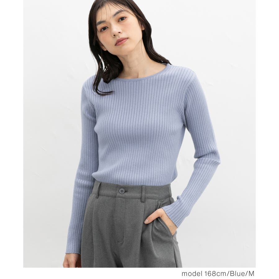 リブ編みの縦ラインでスタイルアップ効果も◎