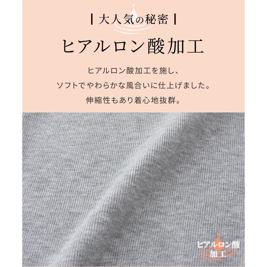 軽くてもちもちとした糸に『ヒアルロン酸加工』をプラスした、しっとりソフトな風合いの『しなやかニット』素材。