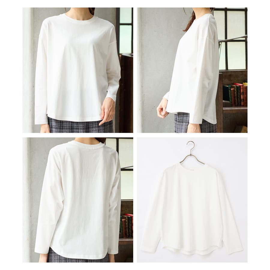 Tシャツはゆったり幅とヒップまで隠れるラウンドヘムでこなれた印象に。
