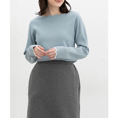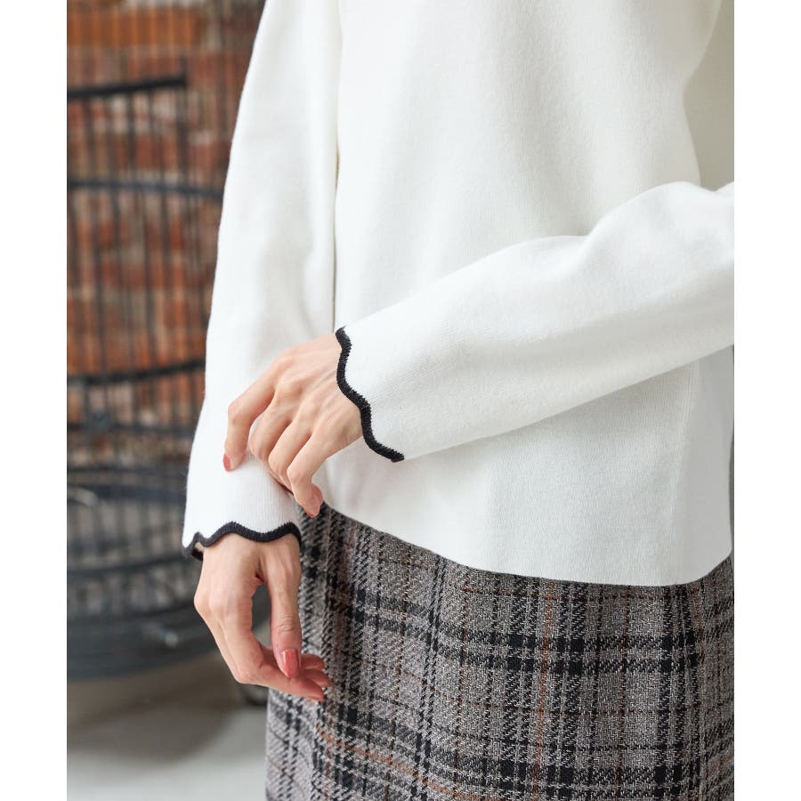 首元・袖口のスカラップと袖口の配色切り替えがアクセントになるデザイン。