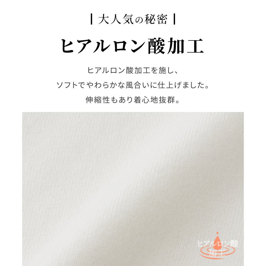 軽くてもちもちとした糸に『ヒアルロン酸加工』で潤いをプラスした、しっとりソフトな風合いの『しなやかニット』素材。