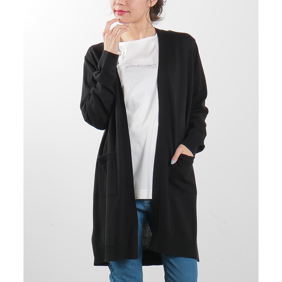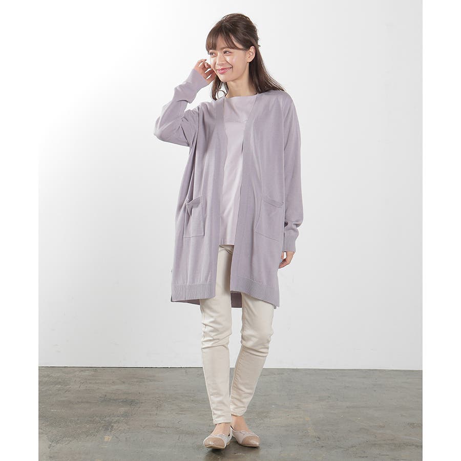 ボタンレスでサッと羽織れ、季節の変わり目に大活躍のロングトッパーカーディガン。