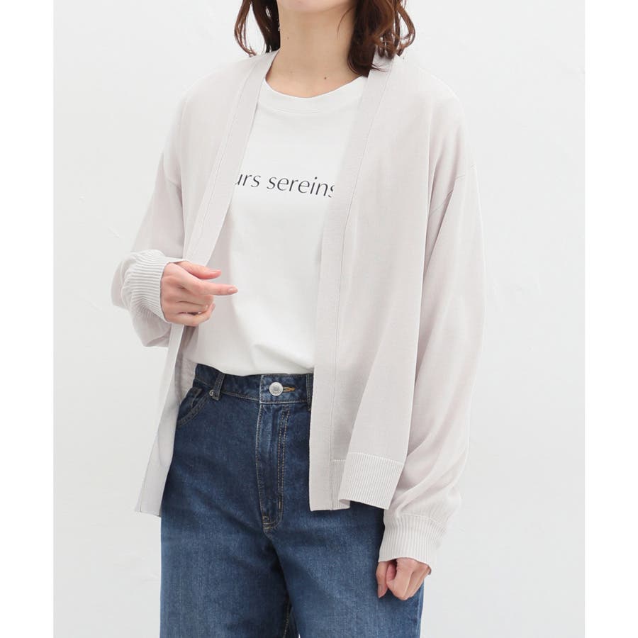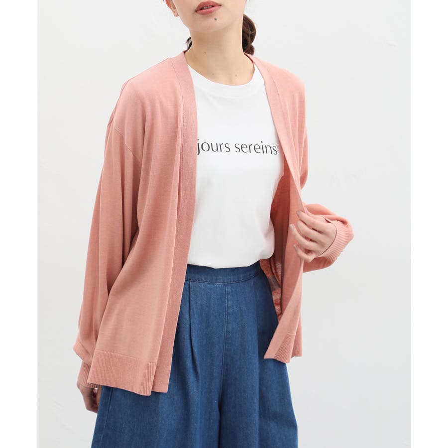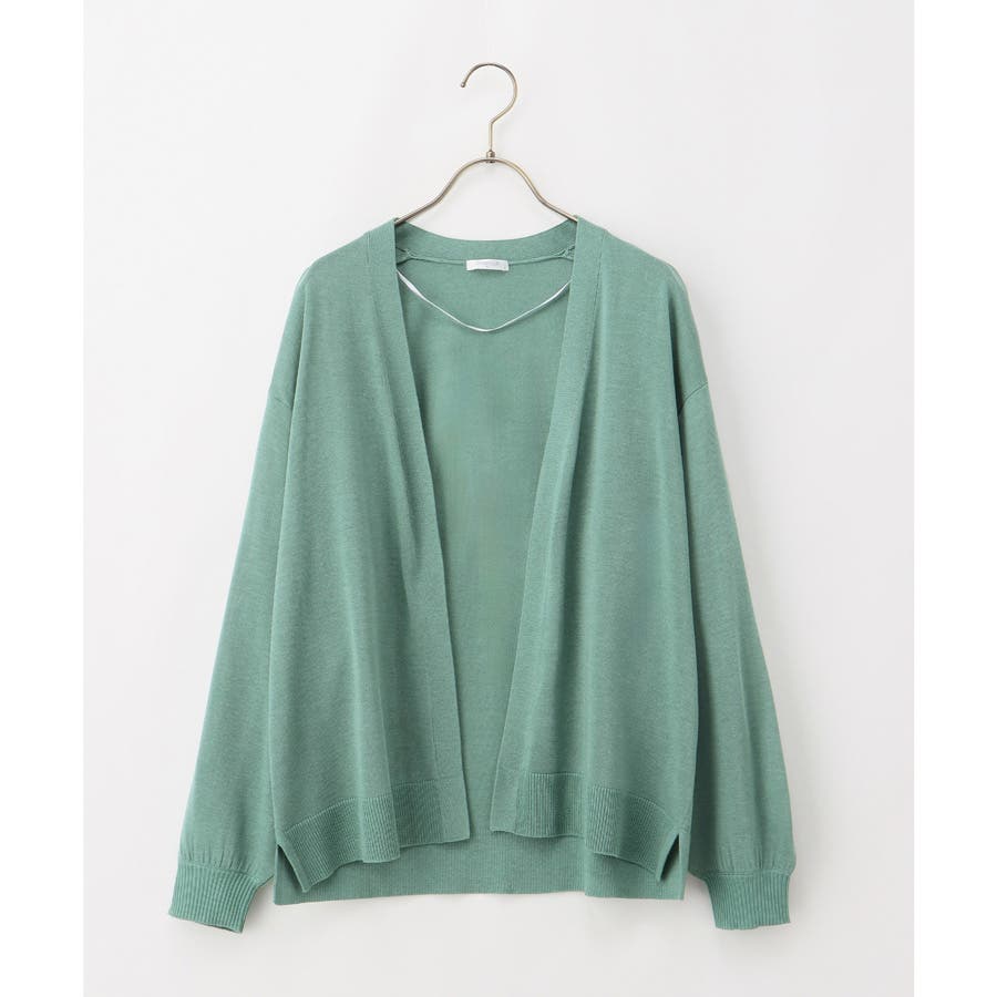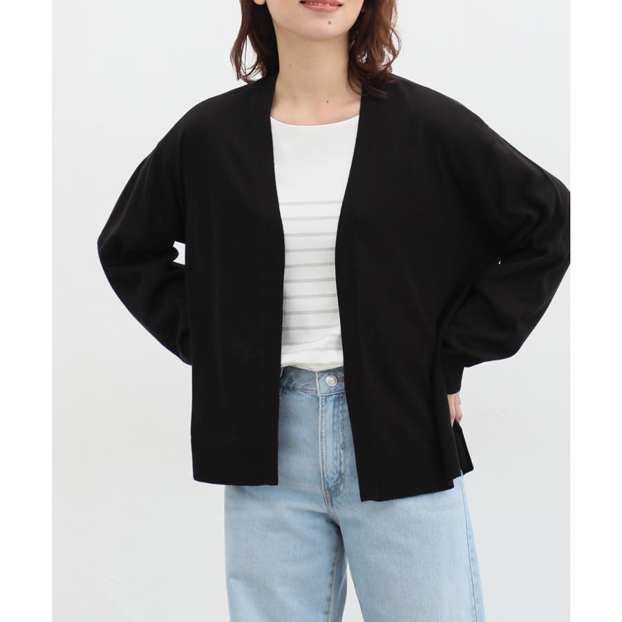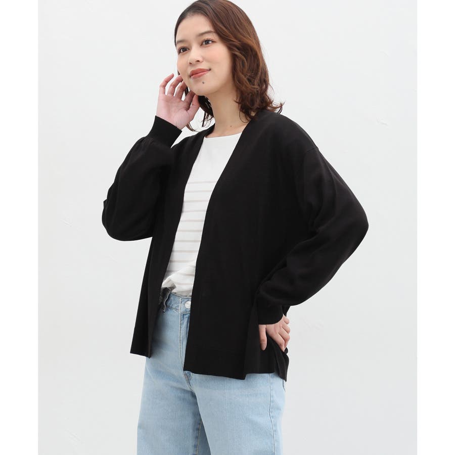 ボタンレスで手軽に羽織れるシンプルデザイン。